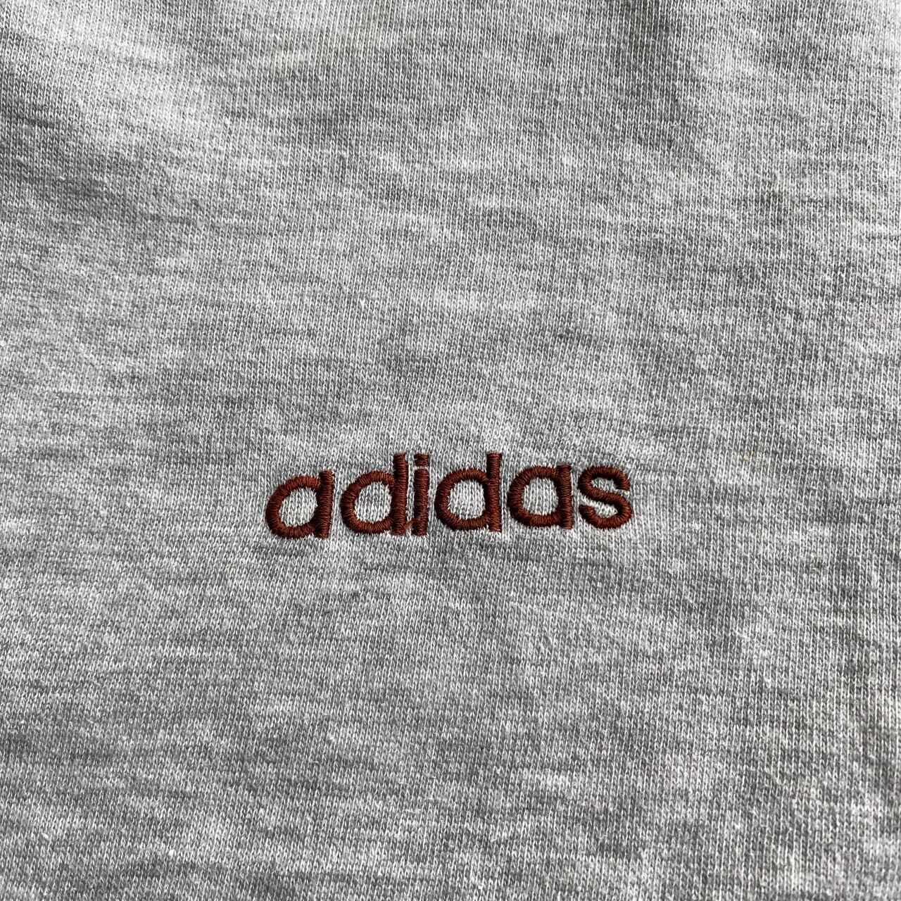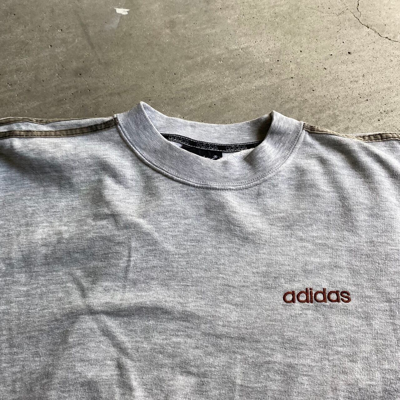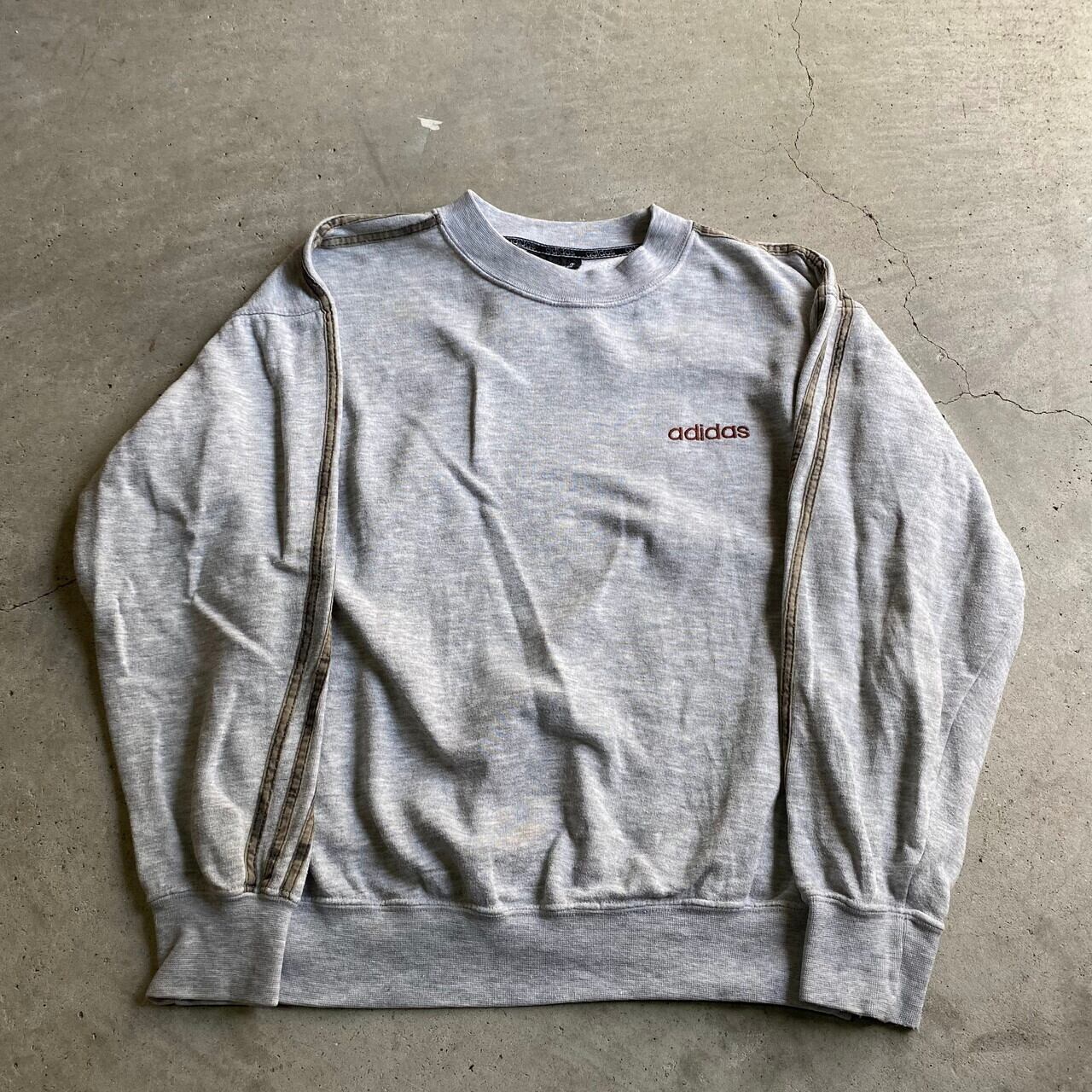 90年代 adidas アディダス ワンポイント ロゴ 刺繍 袖ライン スウェットシャツ トレーナー メンズM相当 古着 90s ビンテージ ヴィンテージ トレーナー ライトグレー【スウェット】【WS2201】