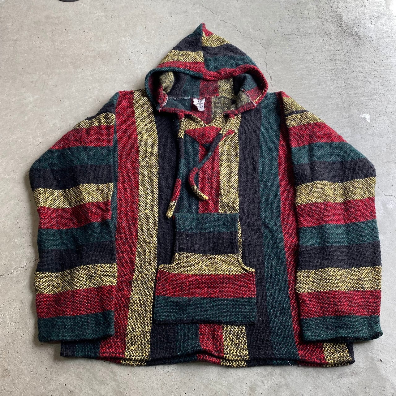 ■ビッグサイズ メキシコ製 ラスタカラー メキシカンパーカー プルオーバーパーカー メンズXL 古着 【パーカー】