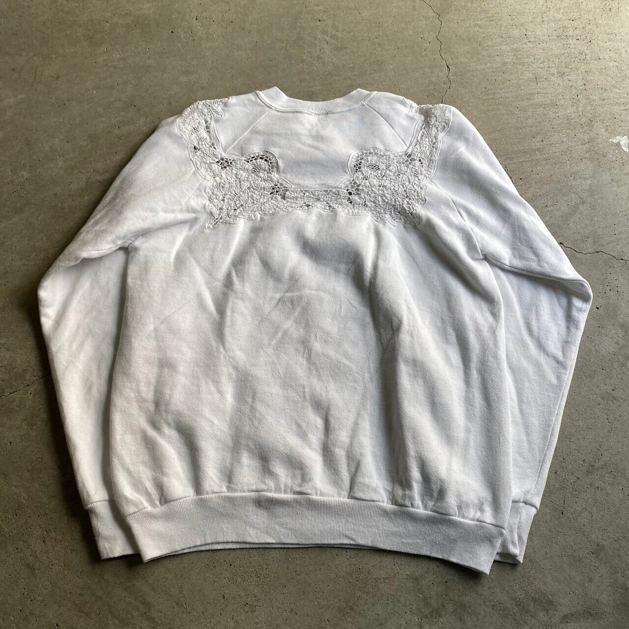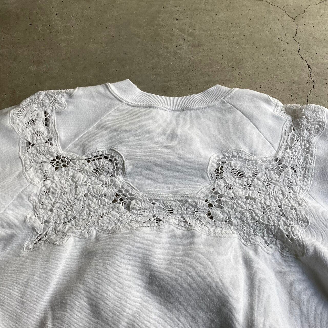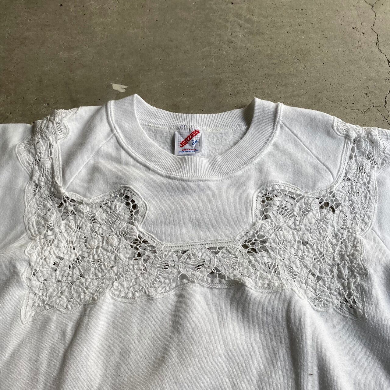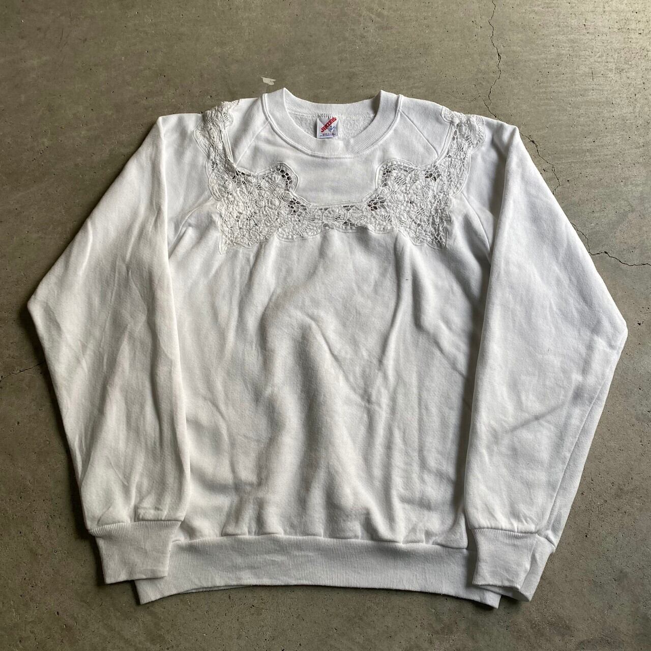 90年代 USA製 レース 透かし編み スウェットシャツ レディースXL相当 古着 90s ヴィンテージ ビンテージ トレーナー ホワイト 白色【スウェット】【WS2202-15】