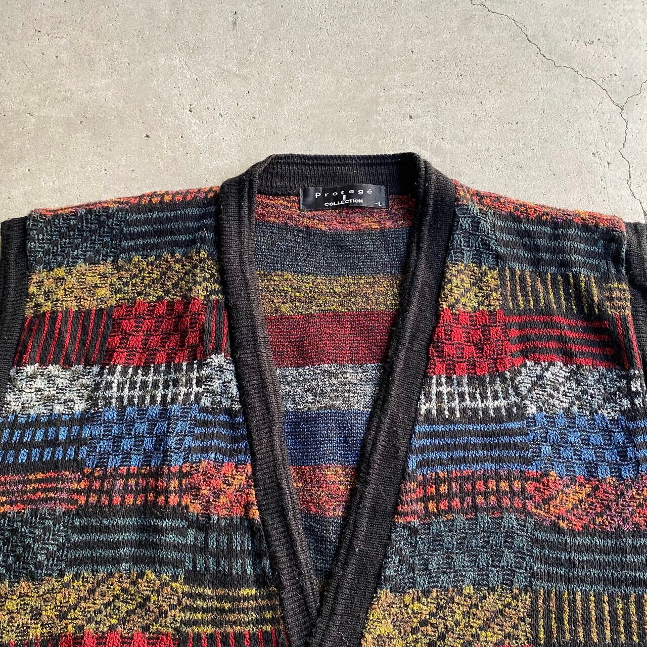 USA製 Protege Collection プロテージコレクション 3D ニットベスト メンズL 古着 マルチカラー【ニットセーター】【ベスト】