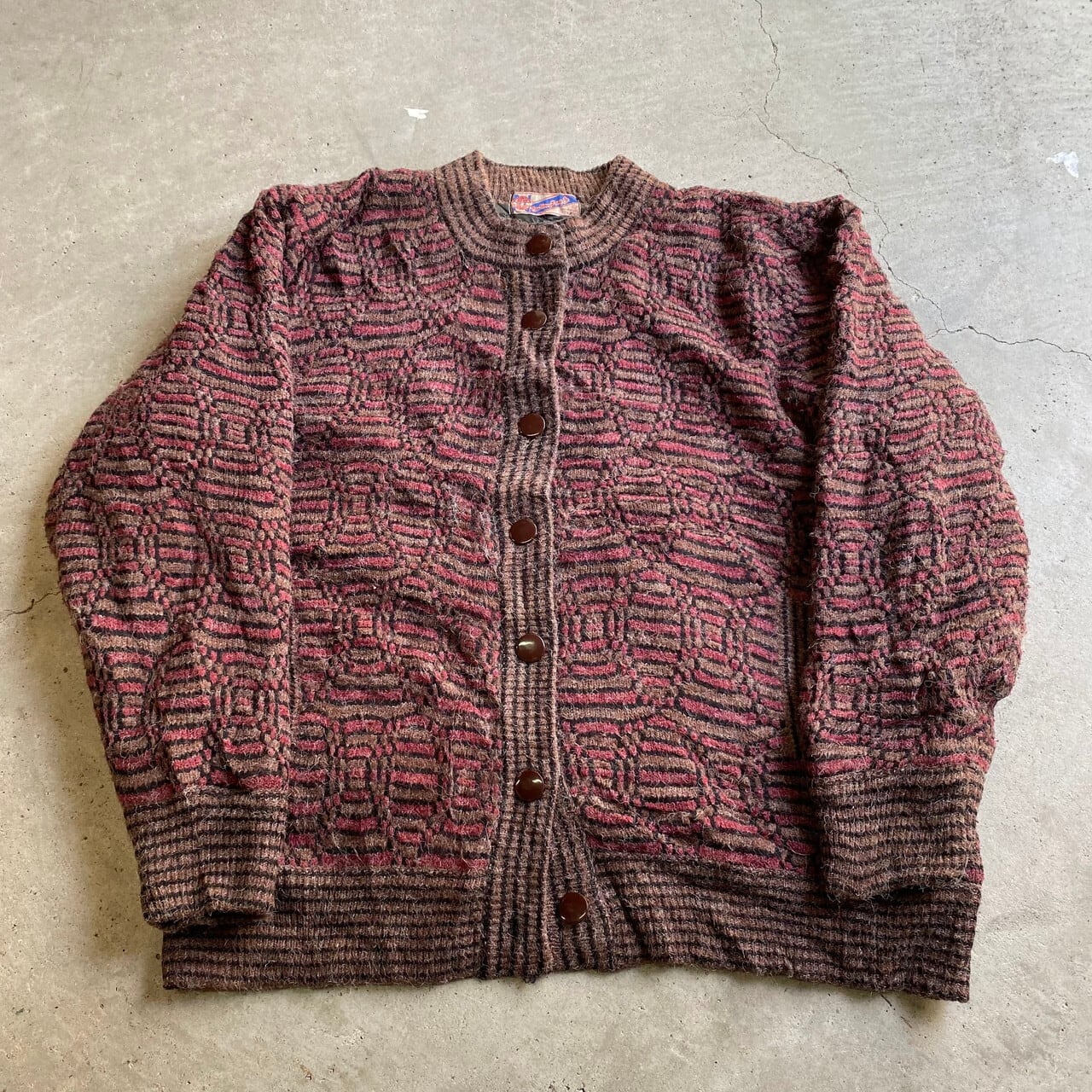 ヴィンテージ 総柄 キルティングライナー アクリルニットカーディガン レディースL相当 古着 ビンテージ ブラウン 茶 【ニットセーター】【WS2201】-2