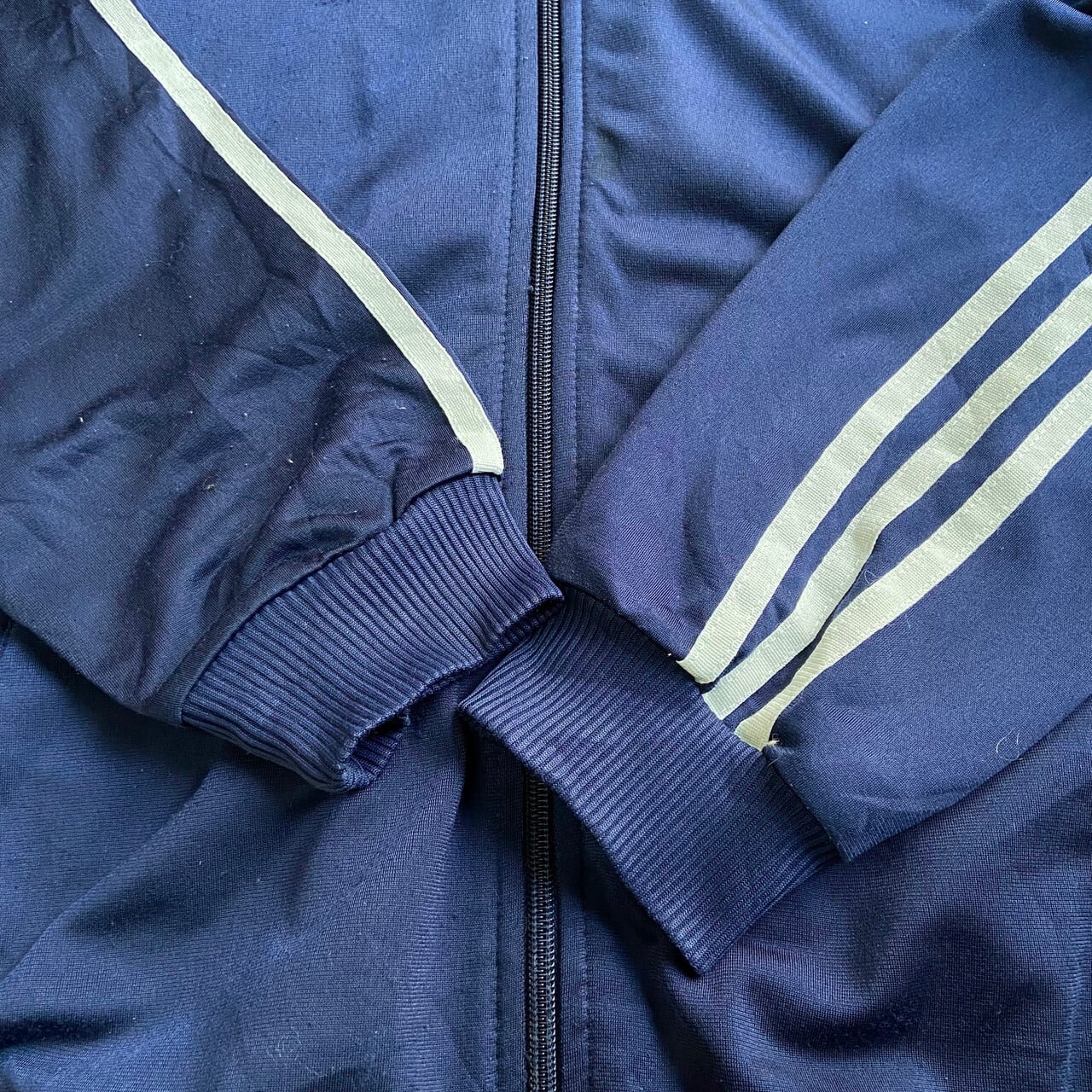 90年代 adidas アディダス トレフォイルロゴ刺?トラックジャケット メンズM相当 90s ヴィンテージ ビンテージ ネイビー 紺色【ジャージ・トラックジャケット】