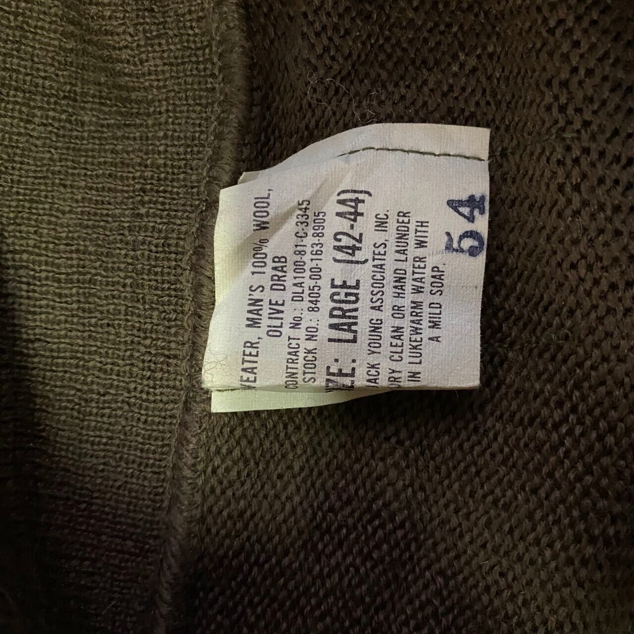 80年代 U.S.ARMY 米軍実品 ヘンリーネック ミリタリー コマンドニットセーター LARGE メンズL 古着 80s ビンテージ ヴィンテージ カーキ オリーブドラブ 【ニットセーター】【SS2201-30】