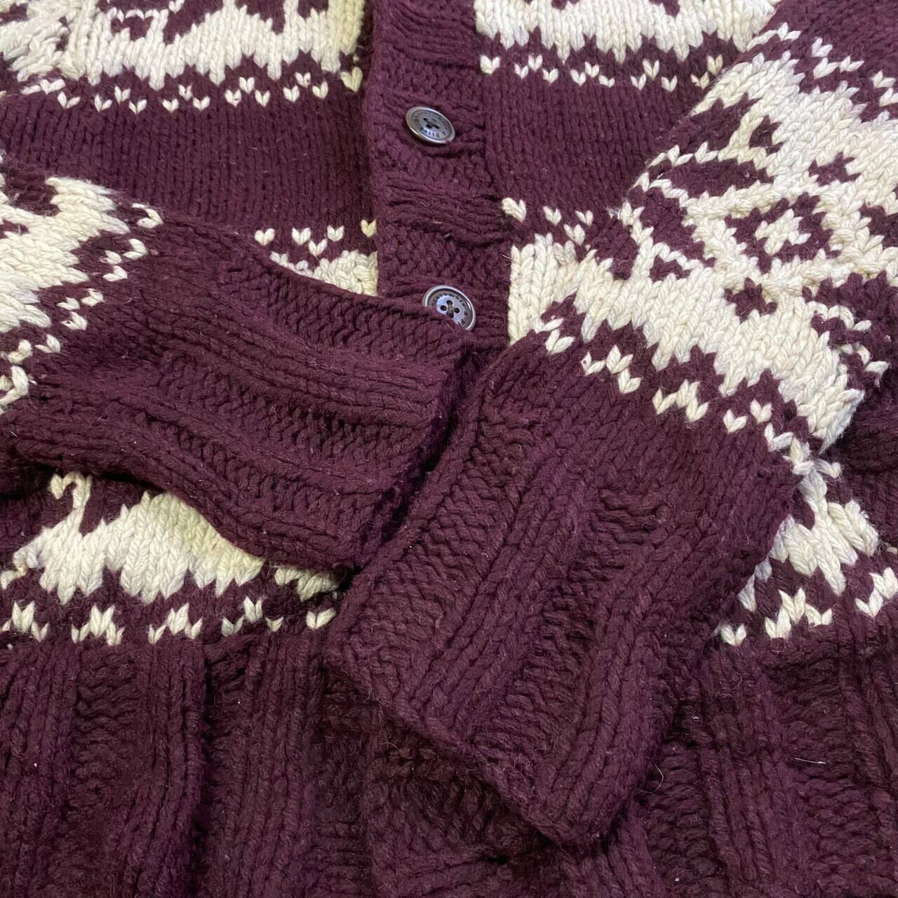 Abercrombie&fitch アバクロ ハイネック ノルディック柄 ウール ニットカーディガン メンズM 古着 えんじ レッド 赤 【ニットセーター】-2【WS2202-50】