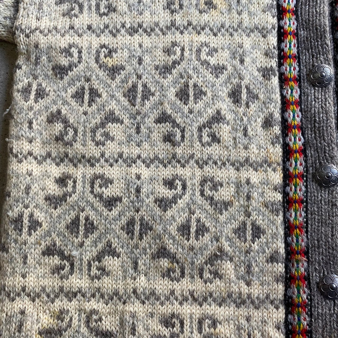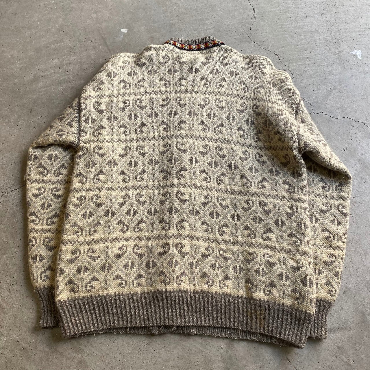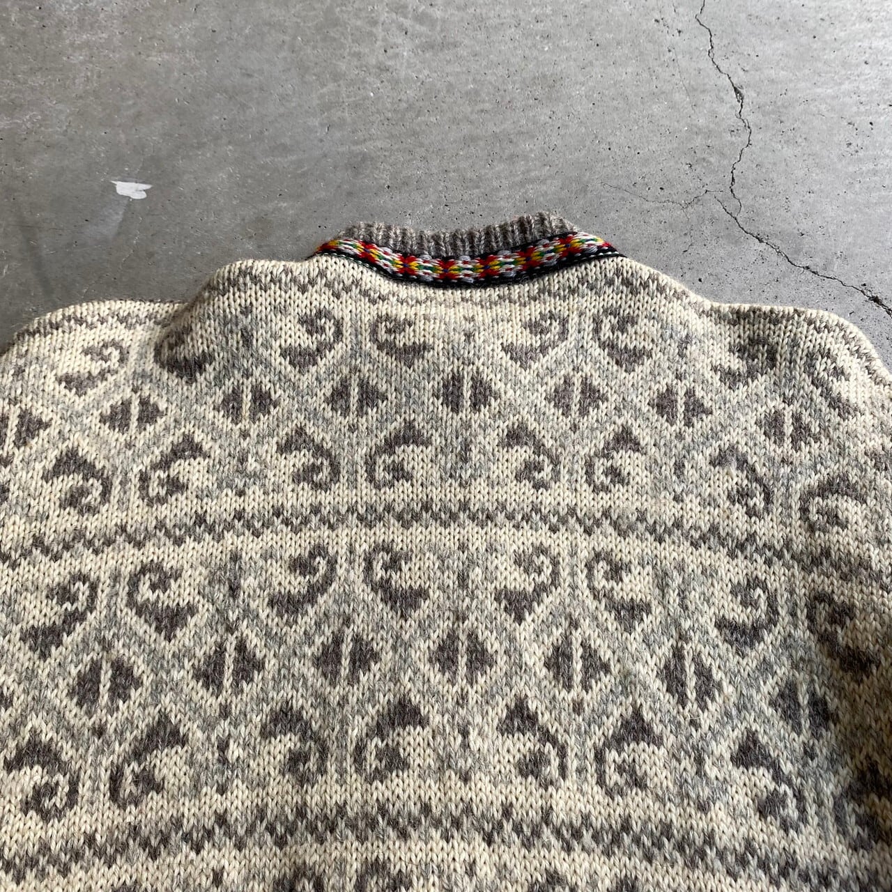 ヴィンテージ ノルウェー製 ノルディックニットカーディガン チロリアンニット レディースL相当 古着 オフホワイト×グレー ハンドメイド【ニットセーター】【WS2201】-1