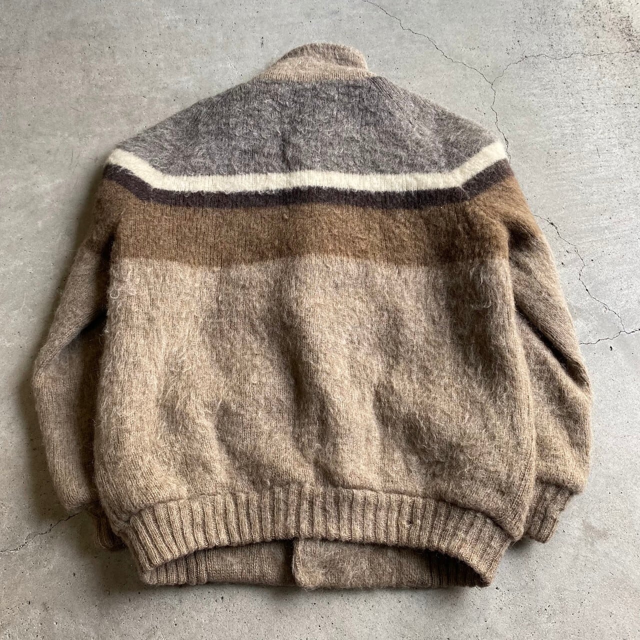 アイスランド製 70年代 ヴィンテージ Hilda Ltd.ボーダー ウールニットジャケット メンズM 古着 ブラウン 茶色 70s ビンテージ 【ブルゾン・ジャケット】【SS2201-30】