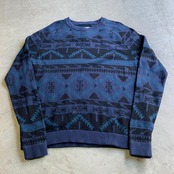 MOSSIMO SUPPLY CO. モッシモ ネイティブ柄 総柄 コットンニットセーター メンズXL 古着 ネイビー 紺【ニットセーター】【WS2202-30】【2203AL15】