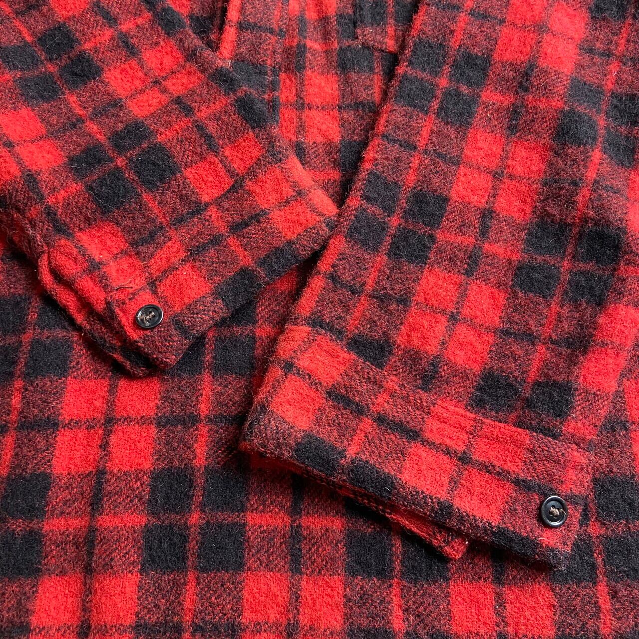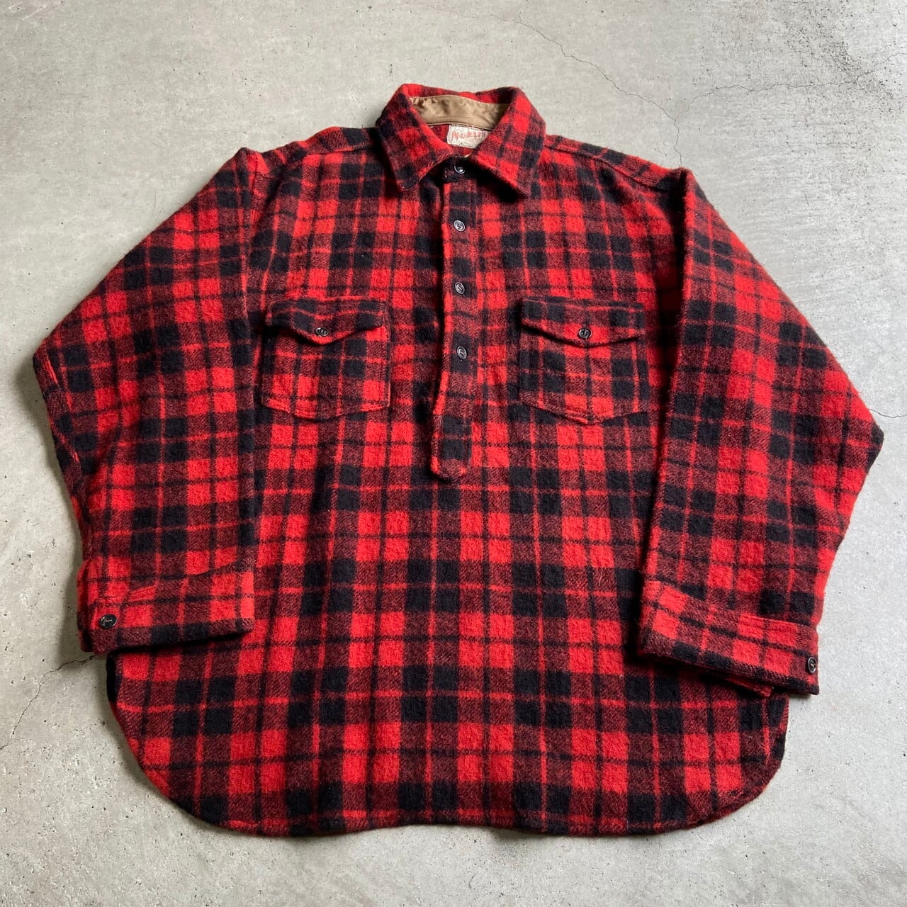 ■ビッグサイズ NORLITE ビンテージ チェック柄 長袖ウールシャツ メンズ2XL相当 古着 ヴィンテージ ハーフボタン プルオーバー【長袖シャツ】