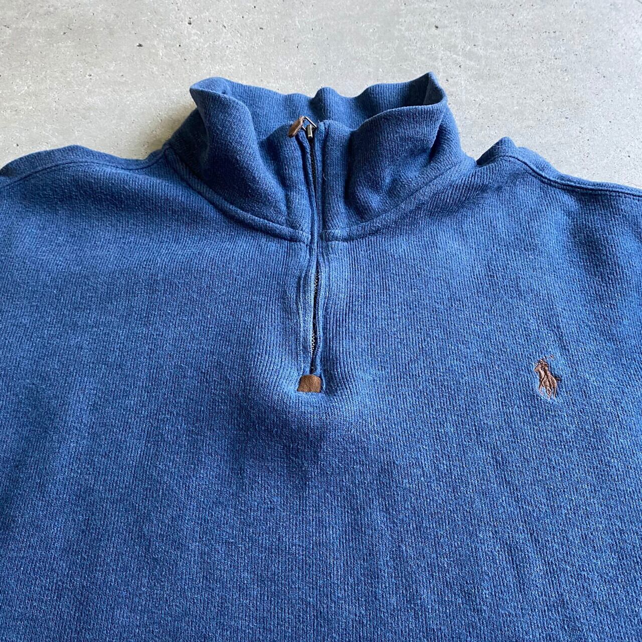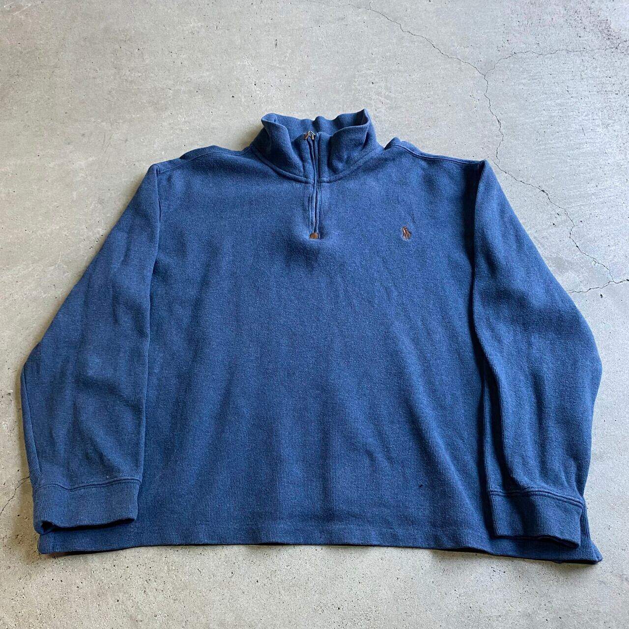 Polo by Ralph Lauren ポロバイラルフローレン ワンポイントロゴ 刺繍 ハーフジップ スウェット メンズL 古着 ブルー 青色 【スウェット】【SWE30】【CS2209-50】