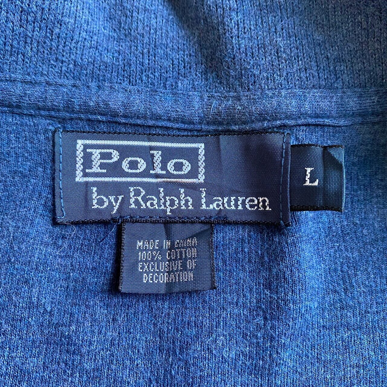 ■Polo by Ralph Lauren ポロバイラルフローレン ワンポイントロゴ 刺繍 ハーフジップ スウェット メンズL 古着 ブルー 青色 【スウェット】