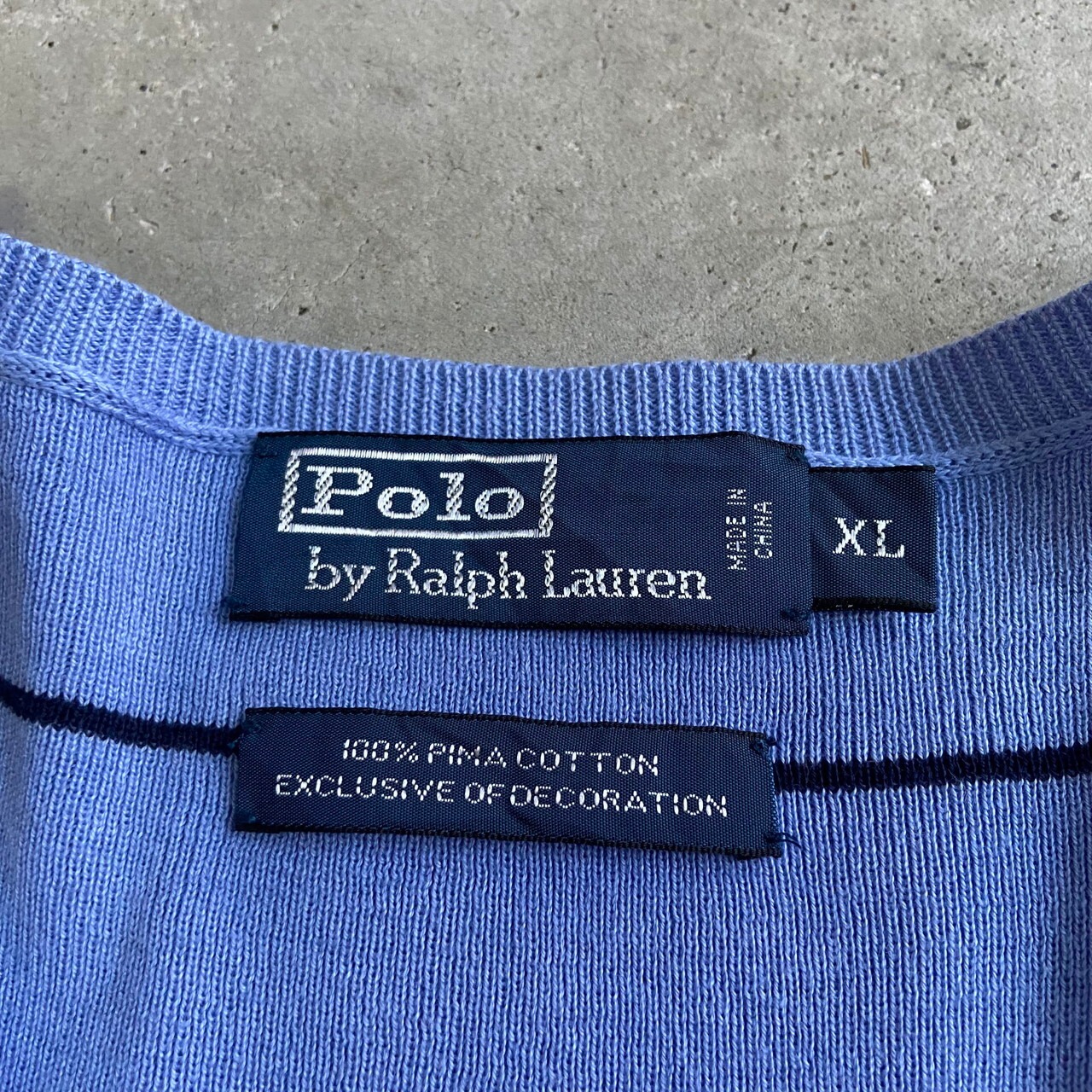 ■Polo by Ralph Lauren ポロバイラルフローレン ボーダー Vネック ピマコットンニットセーター メンズXL 古着 サックスブルー 水色 薄手 【ニットセーター】【SA211130】-2