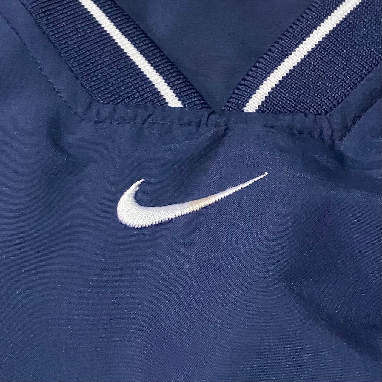 ビッグサイズ 00年代 NIKE TEAM ナイキ Blue Devils カレッジチーム ロゴ刺繍 スウォッシュ Vネック ナイロンウォームアッププルオーバー メンズXL 古着 ナイロンジャケット 00s ビンテージ ヴィンテージ ネイビー 紺色【ナイロンジャケット】【SS2201-30】