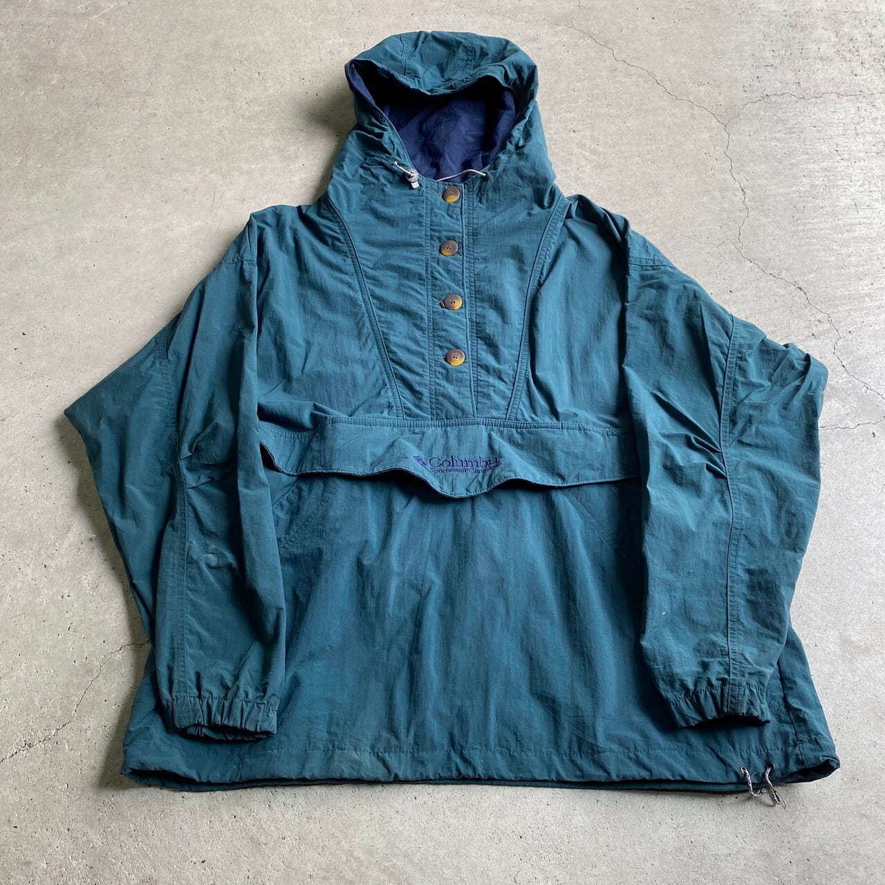 90年代 Columbia コロンビア ナイロンプルオーバージャケット メンズL相当 レディース2XL相当 古着 アノラックパーカー ナイロンジャケット 90s ヴィンテージ ビンテージ グリーン 緑色【アウトドアジャケット】