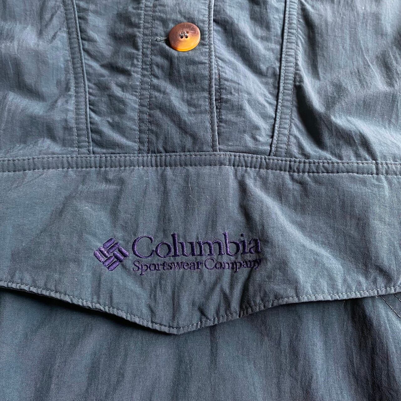 ■ 90年代 Columbia コロンビア ナイロンプルオーバージャケット メンズL相当 レディース2XL相当 古着 アノラックパーカー ナイロンジャケット 90s ヴィンテージ ビンテージ グリーン 緑色【アウトドアジャケット】