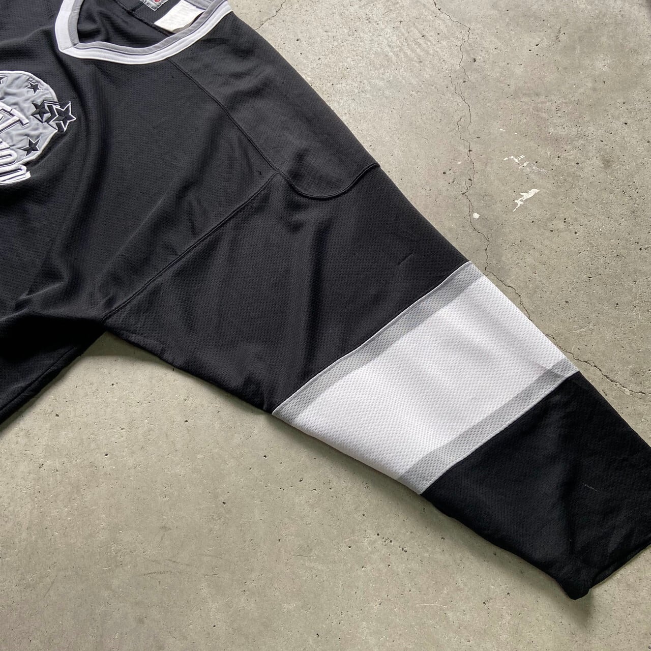 ■ビッグサイズ 90年代 PLANET HOLLYWOOD プラネットハリウッド ロゴ刺繍 ホッケーシャツ メンズ2XL 古着 90S ヴィンテージ ビンテージ ゲームシャツ ユニフォーム ブラック ホワイト 黒 白 大きいサイズ【ゲームシャツ】