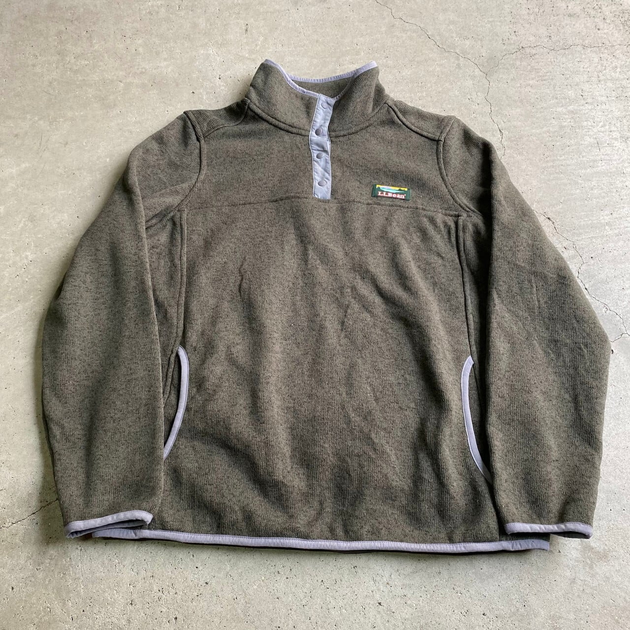 L.L.Bean ハーフボタン スナップボタン エアーライトニット レディースM 古着 フリースライナー ワンポイントロゴ 山ロゴ カーキ グリーン 緑色【ニットセーター】