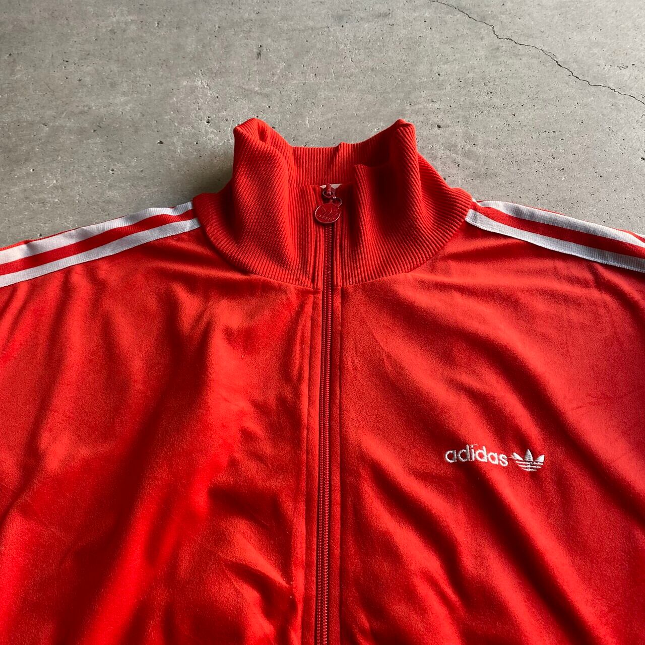 80年代 adidas アディダス ベロアジャージ トラックジャケット 古着 メンズLサイズ相当 切替 レッド 赤【ジャージ・トラックジャケット】【WS2202-15】