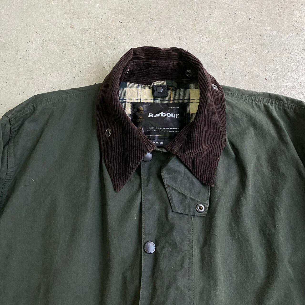 ■ Barbour バブアー BORDER ボーダー ワックスコットン オイルドジャケット 英国製 C46 メンズXL相当 古着 カーキ グリーン 緑【ワークジャケット】【new22】