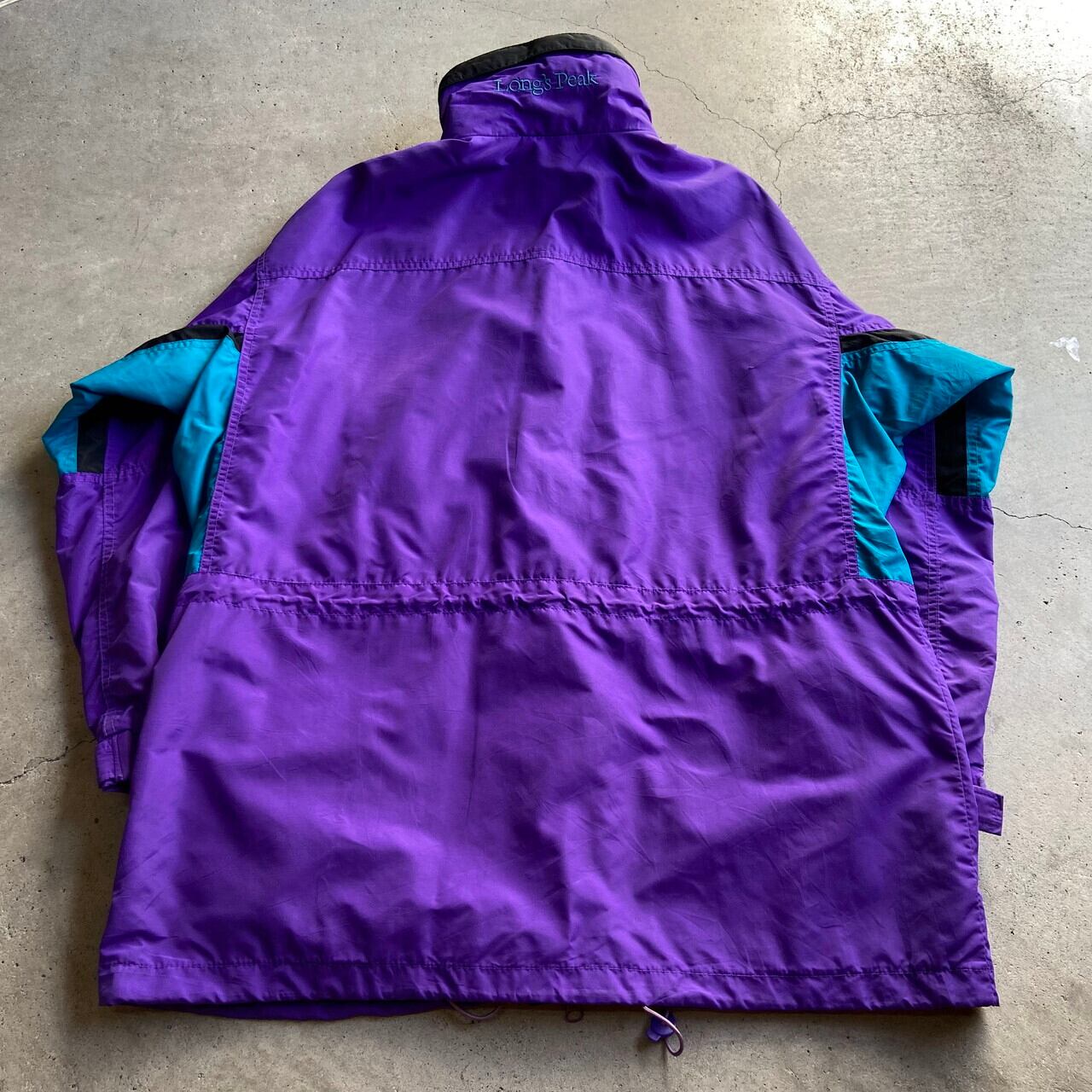 90年代 ビンテージ Columbia コロンビア フード収納型 ハイネック マウンテンジャケット レディースL Longs Peak 古着 90s ヴィンテージ ナイロンジャケット パープル 紫 ワンポイントロゴ刺繍 フード収納型【アウトドアジャケット】-1【WS2202-50】【SOL】