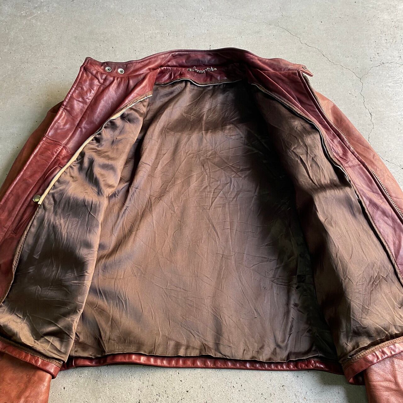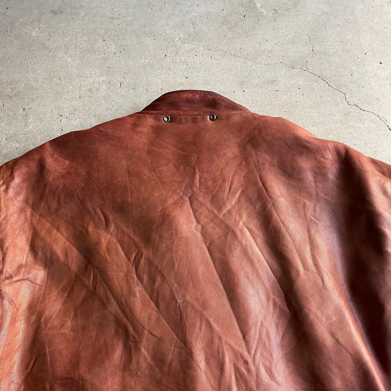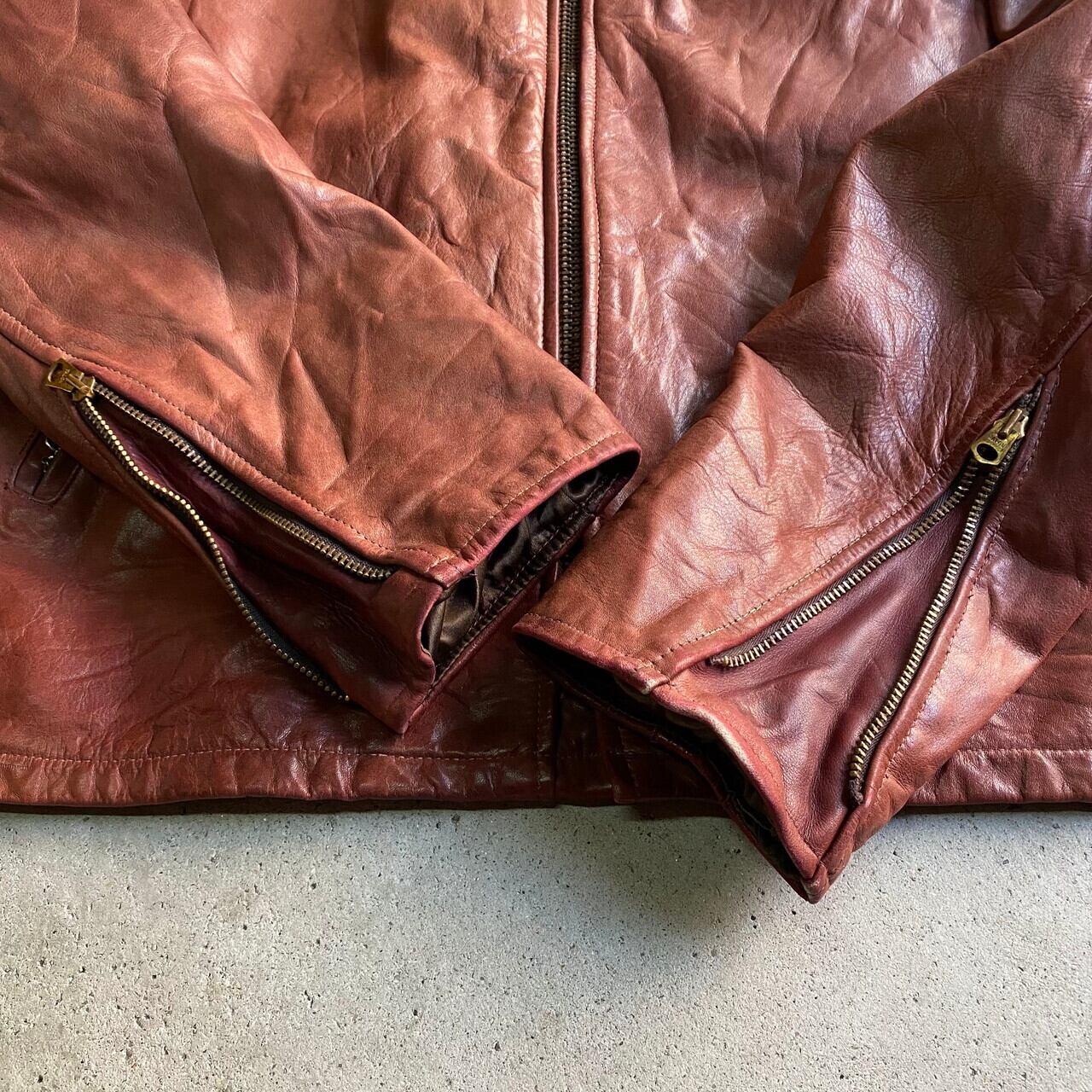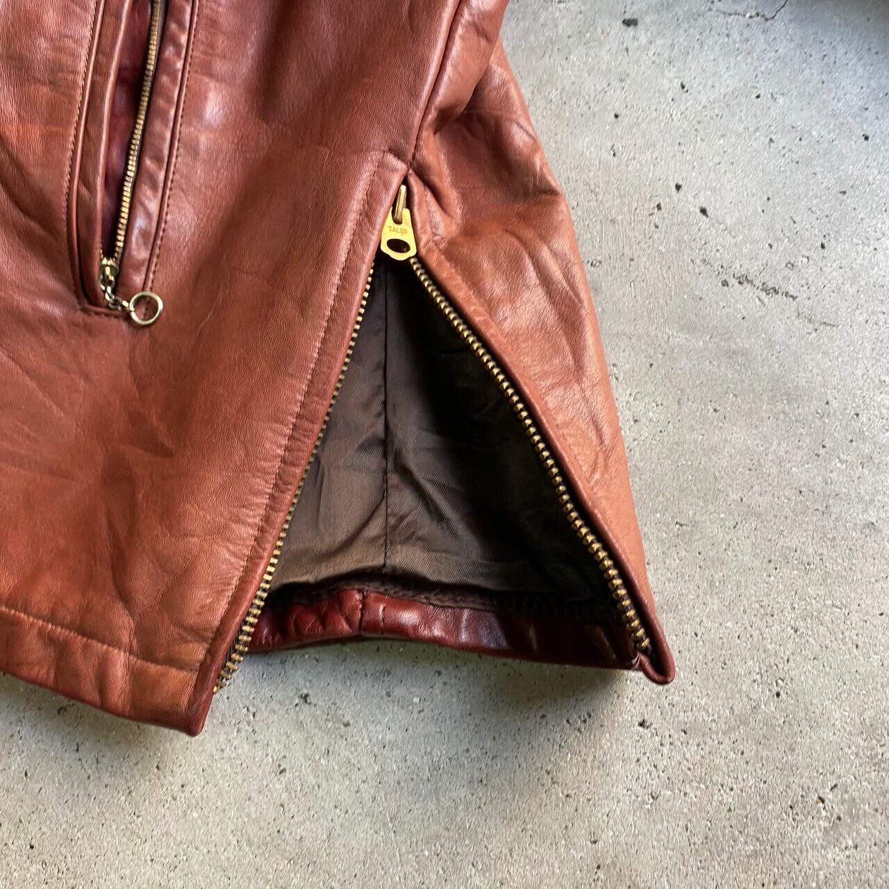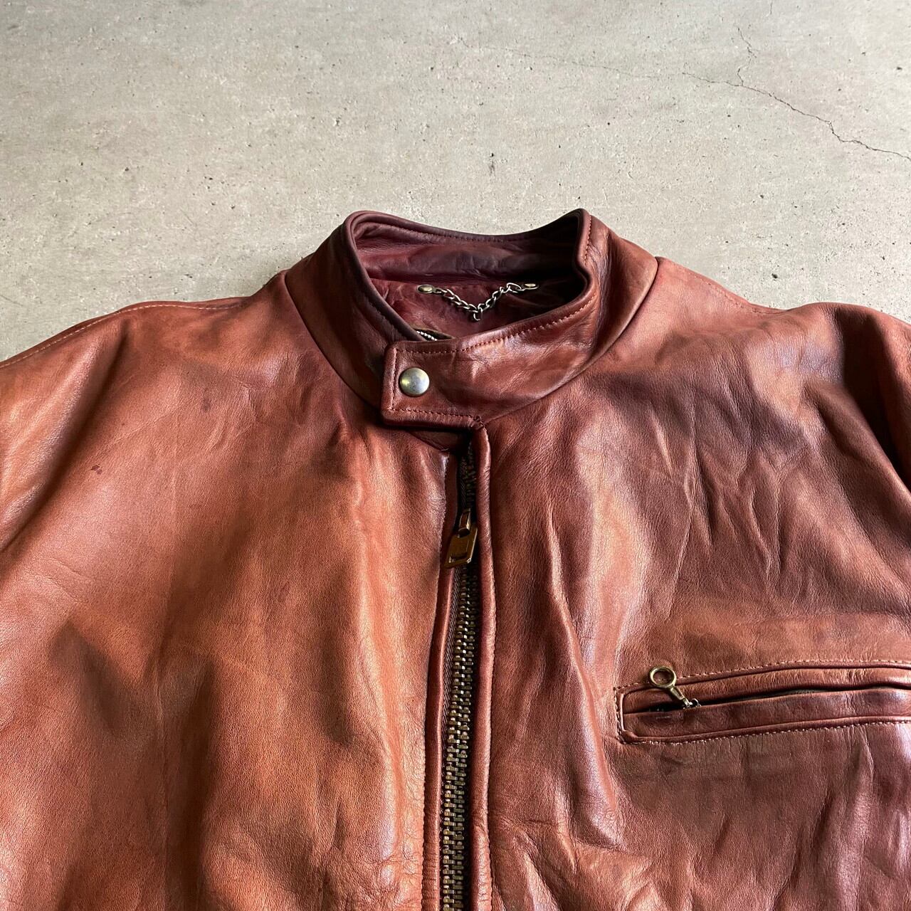 70年代 ビンテージ シングルライダースジャケット レザージャケット メンズXL相当 古着 ブラウン 茶色 革ジャン ヴィンテージ【ブルゾン・ジャケット】【CS2209-30】