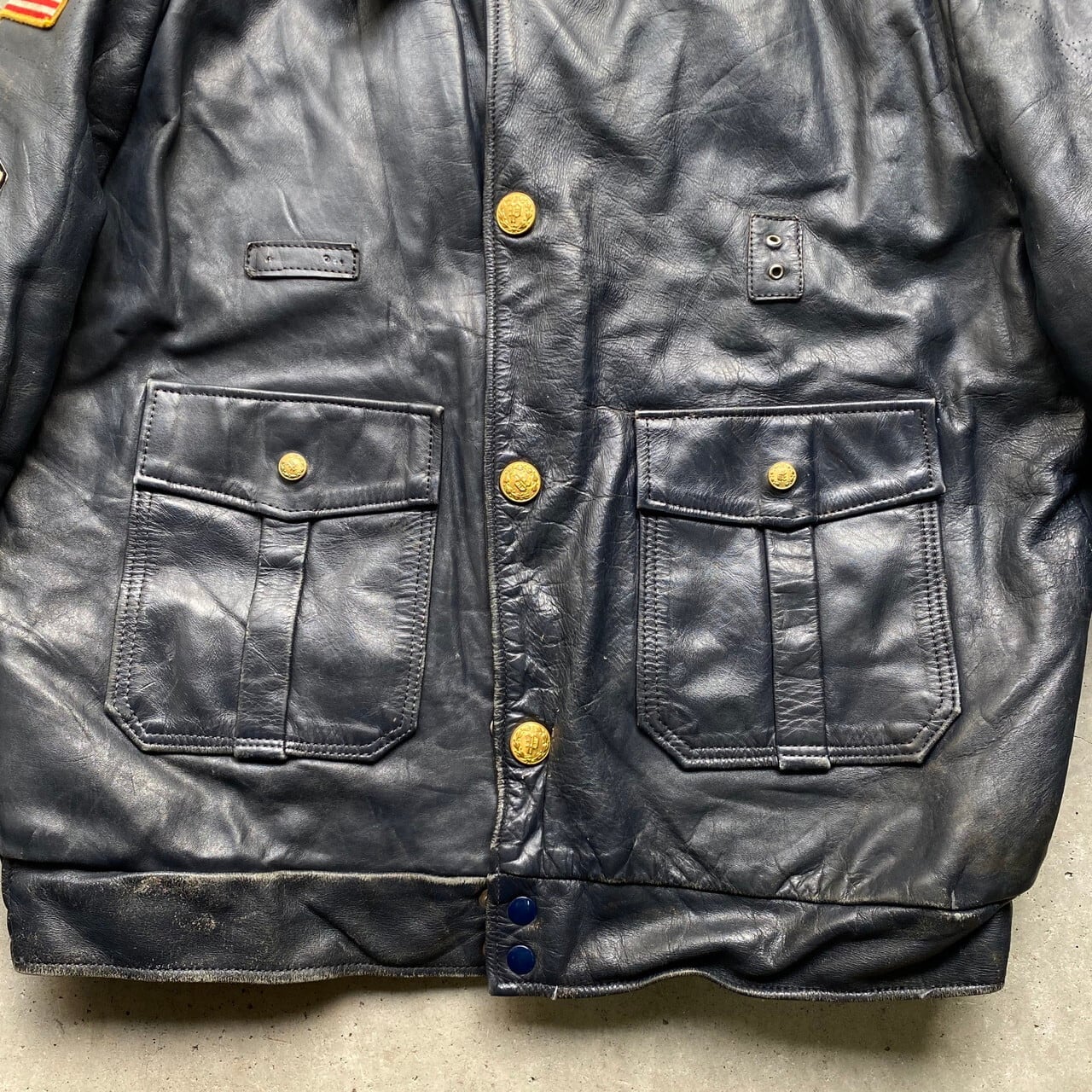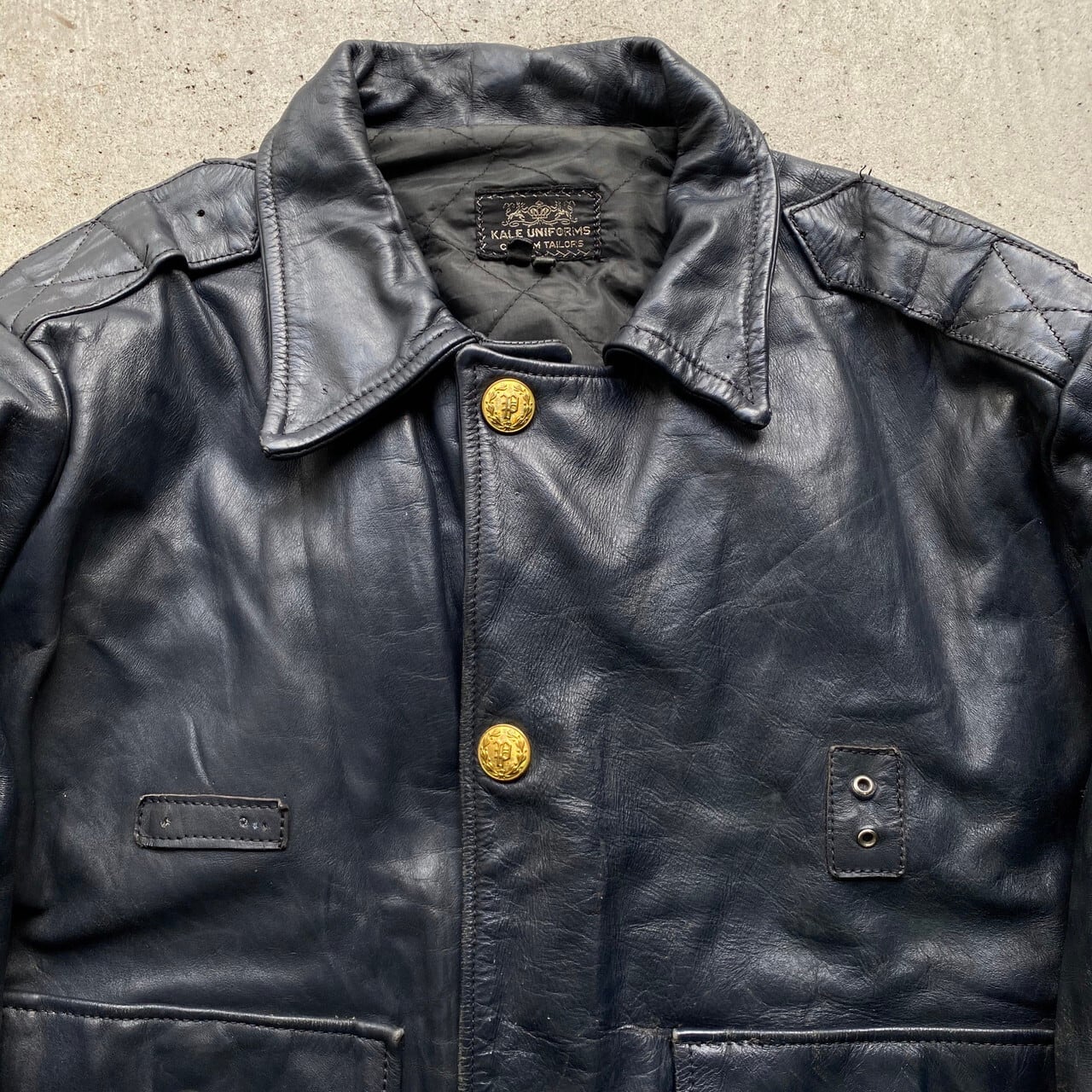 ■70年代 KALE UNIFORMS レザー ポリスマンジャケット レザージャケット 革ジャン メンズXL相当 古着 ブラック 黒 70s ヴィンテージ ビンテージ【ブルゾン・ジャケット】