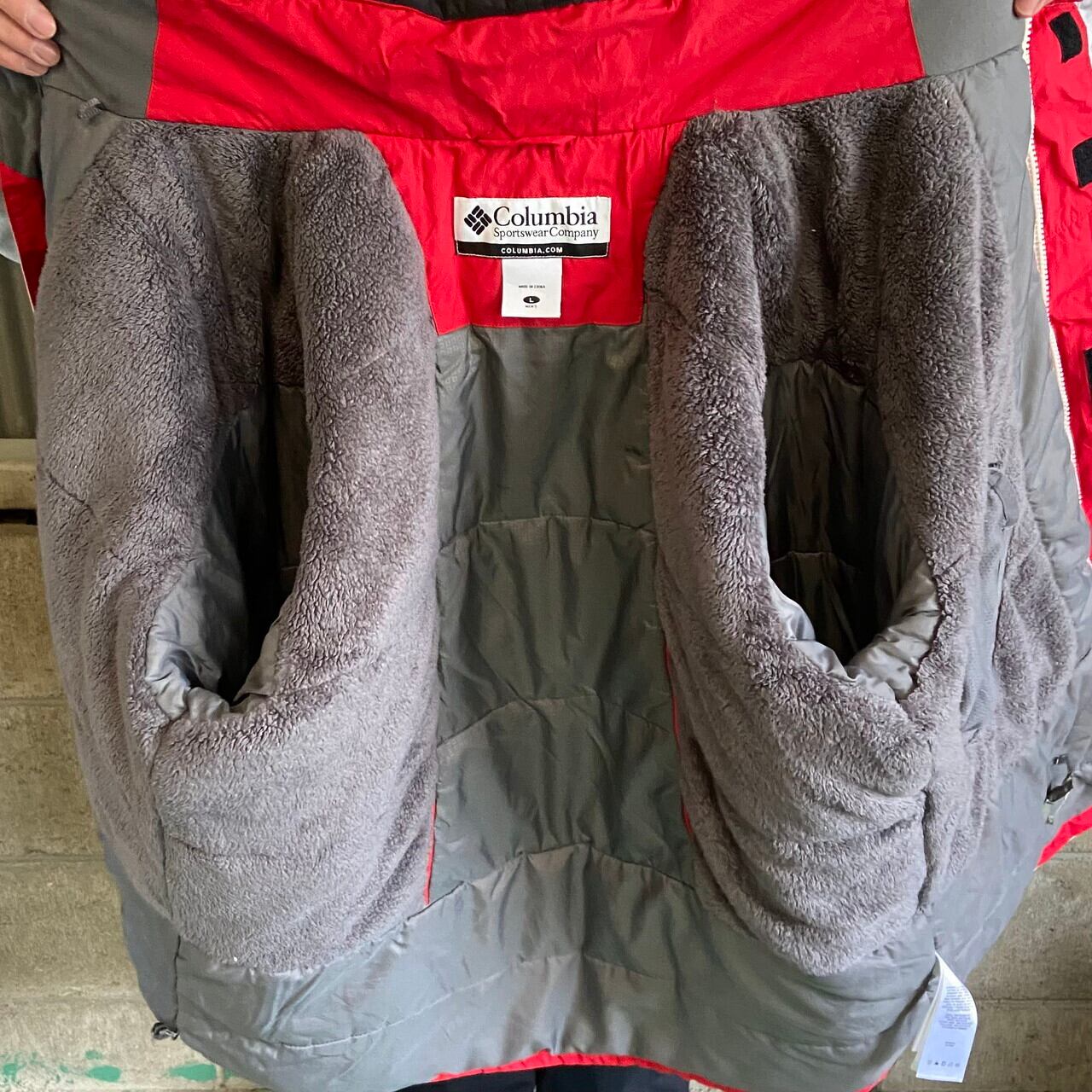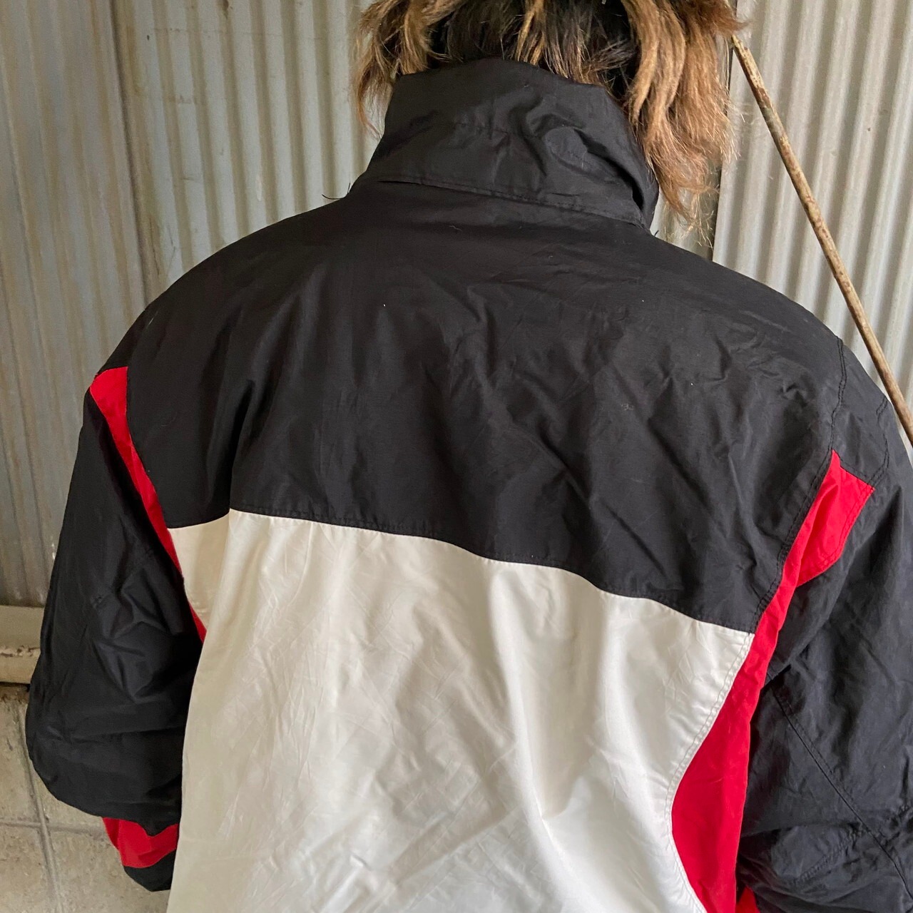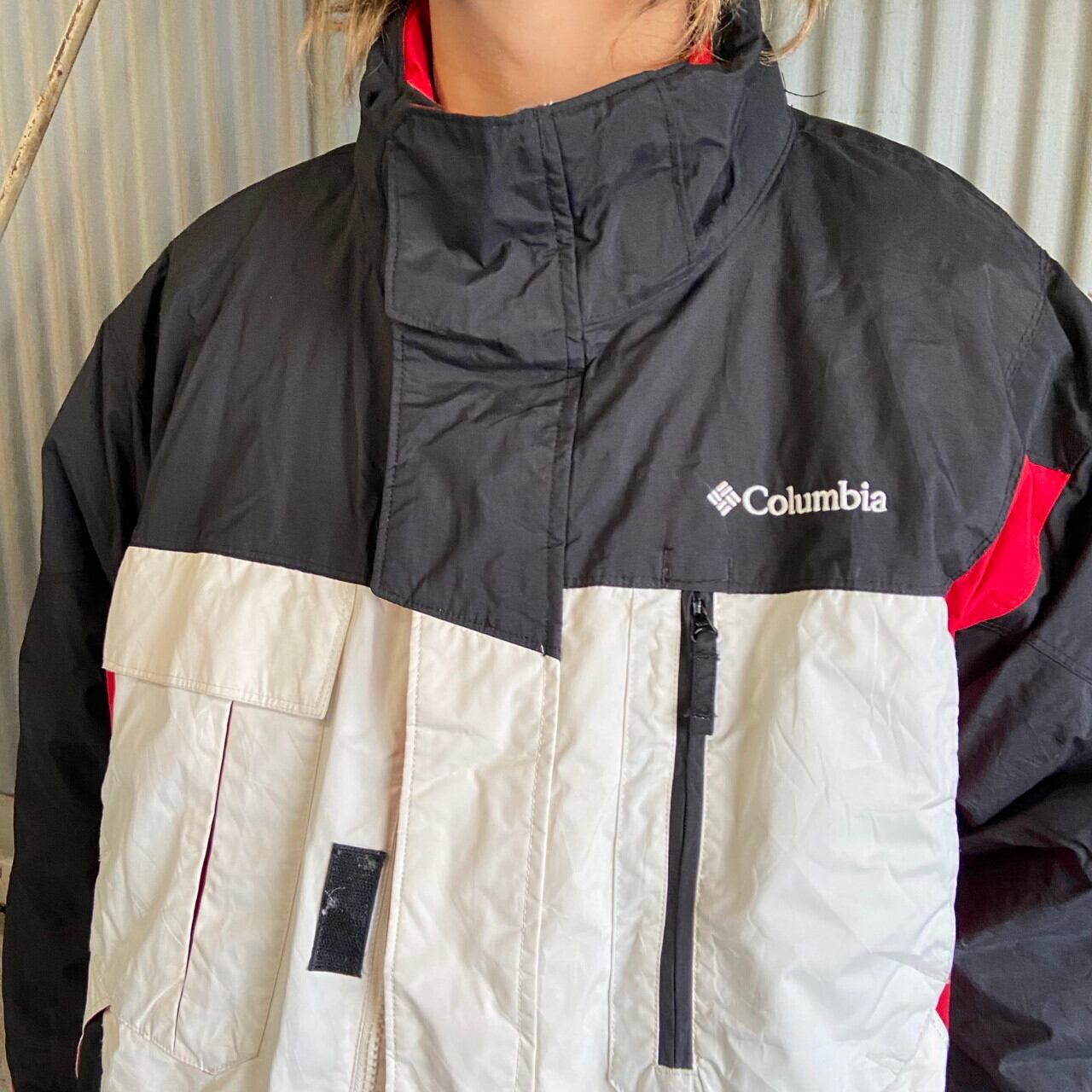 00年代 Columbia コロンビア ハイネック ボアライナー 切り替え 中綿入り マウンテンジャケット メンズXL 古着 ナイロンジャケット 00s ヴィンテージ ビンテージ ブラック ホワイト レッド 黒 白 赤色【アウトドアジャケット】【CS2209a-30】【CS2211-40】