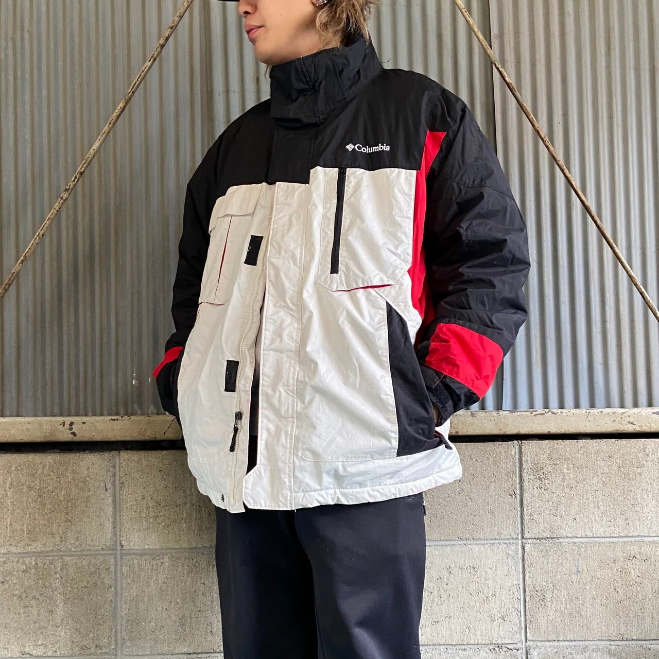 ■00年代 Columbia コロンビア ハイネック ボアライナー 切り替え 中綿入り マウンテンジャケット メンズXL 古着 ナイロンジャケット 00s ヴィンテージ ビンテージ ブラック ホワイト レッド 黒 白 赤色【アウトドアジャケット】