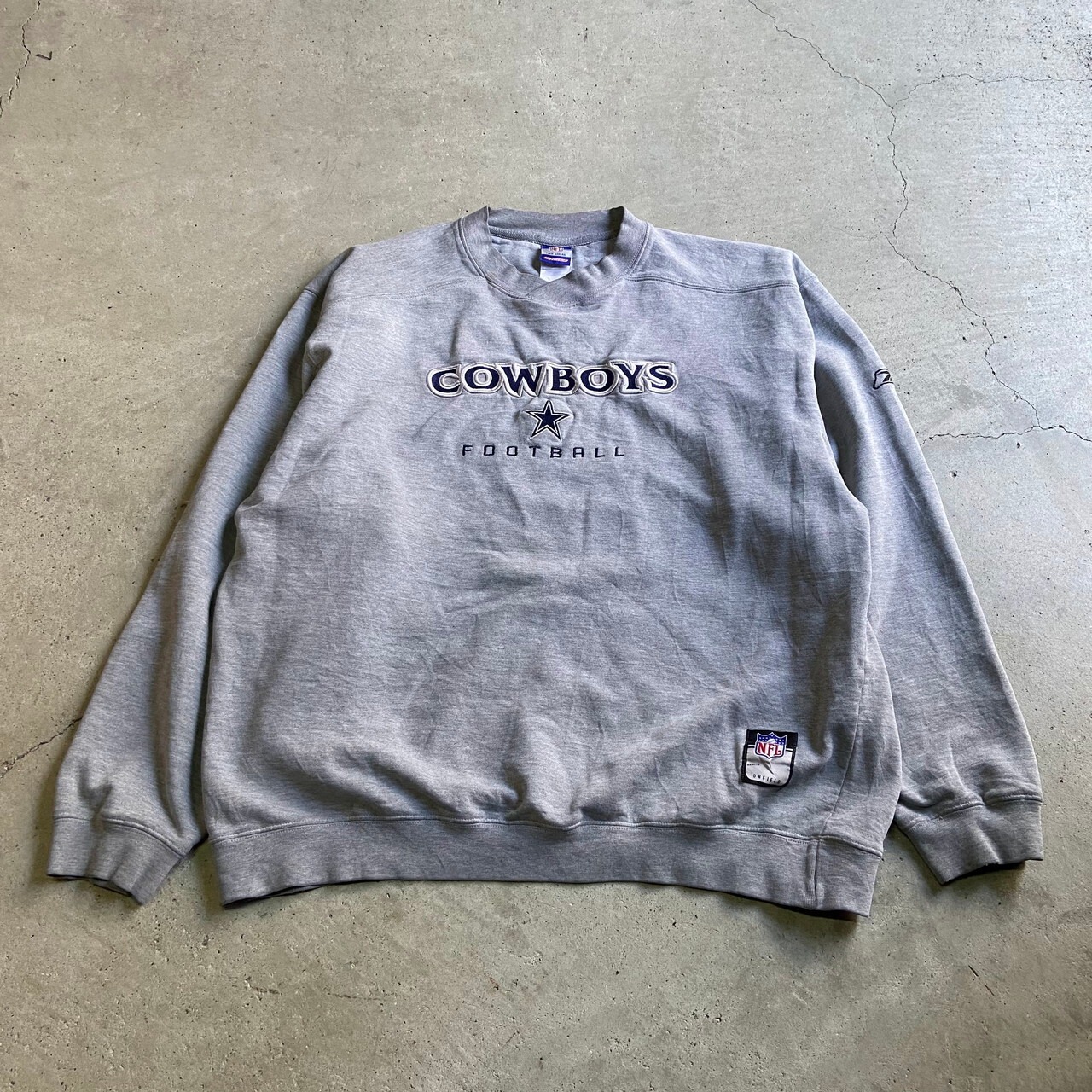 ■Reebok リーボック NFL ダラス・カウボーイズ チームロゴ 刺繍 スウェットシャツ メンズXL相当 古着 Dallas Cowboys トレーナー ライトグレー 灰色 【トレーナー】