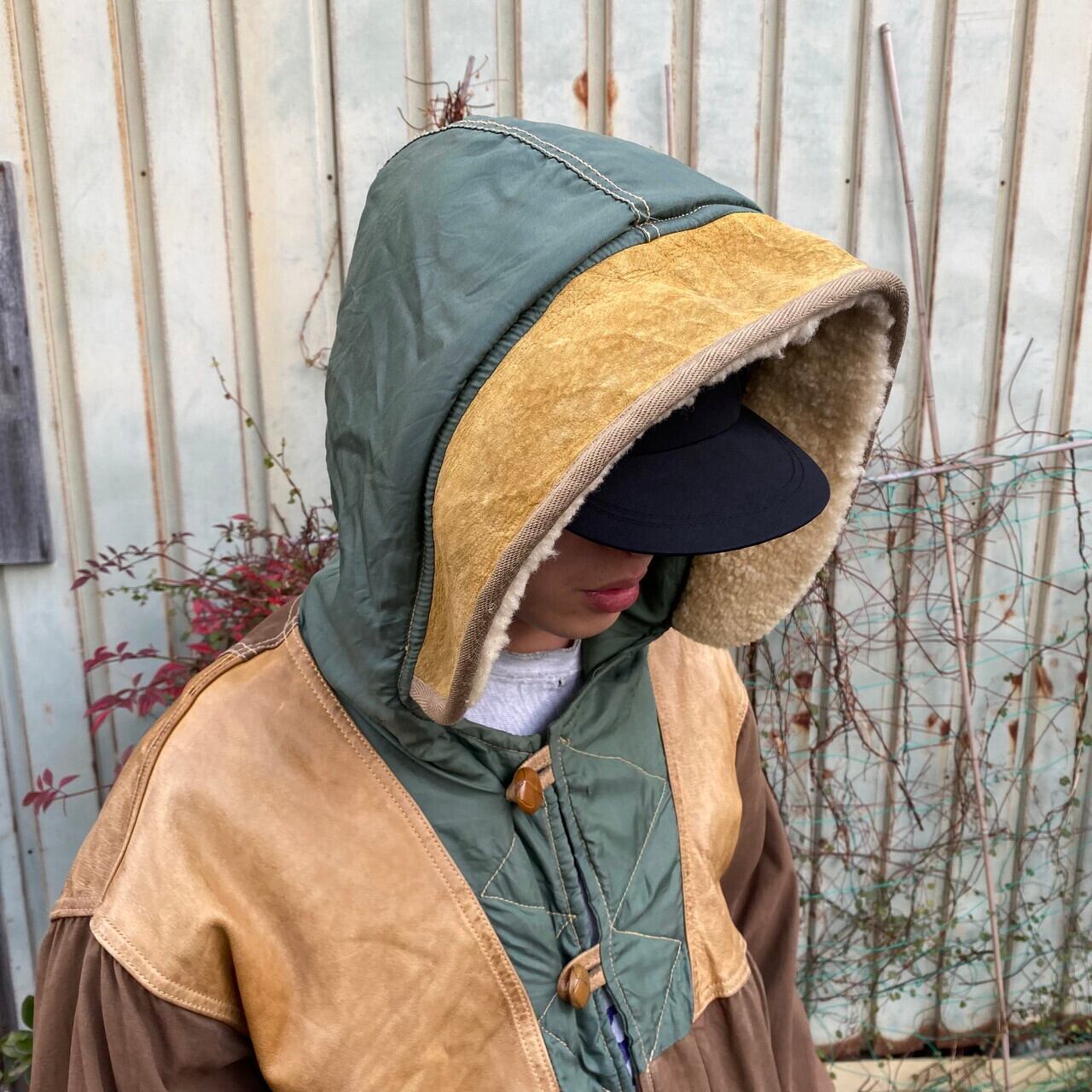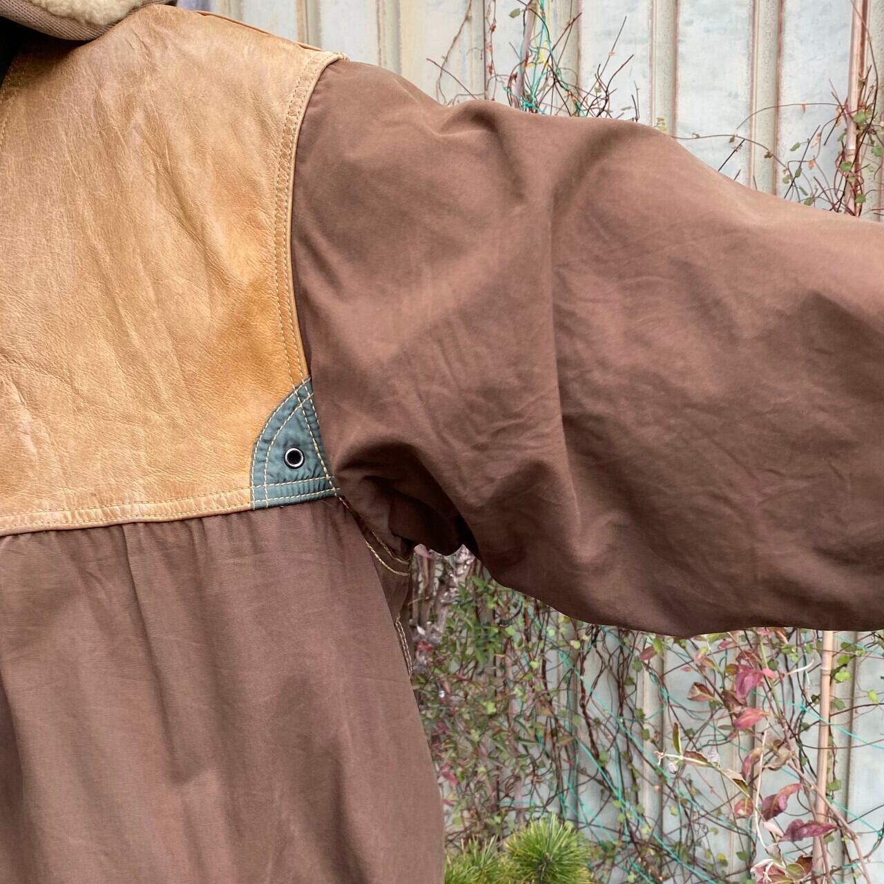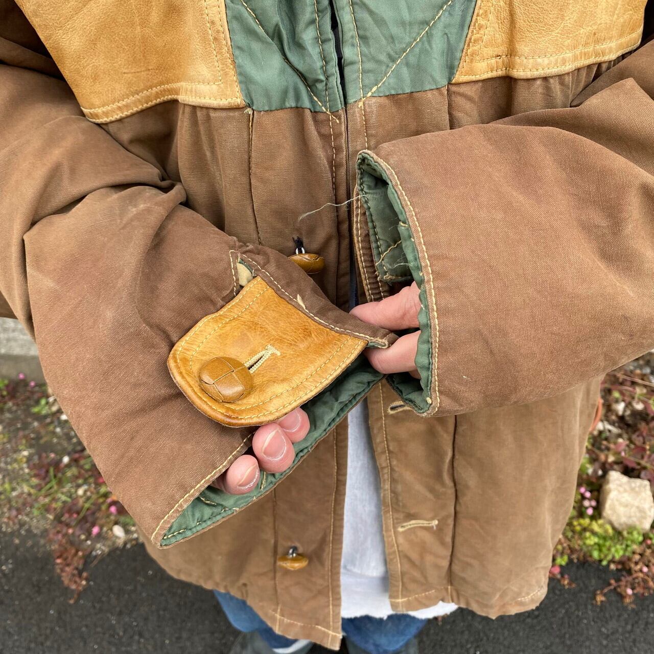 C17 CEDIXSEPT ユーロ フランス ナイロン×レザー×ダック地 ムートンファー ハンティング コンビネーション フーデッドジャケット メンズXL相当 古着 ブラウン 茶色 【ブルゾン・ジャケット】
