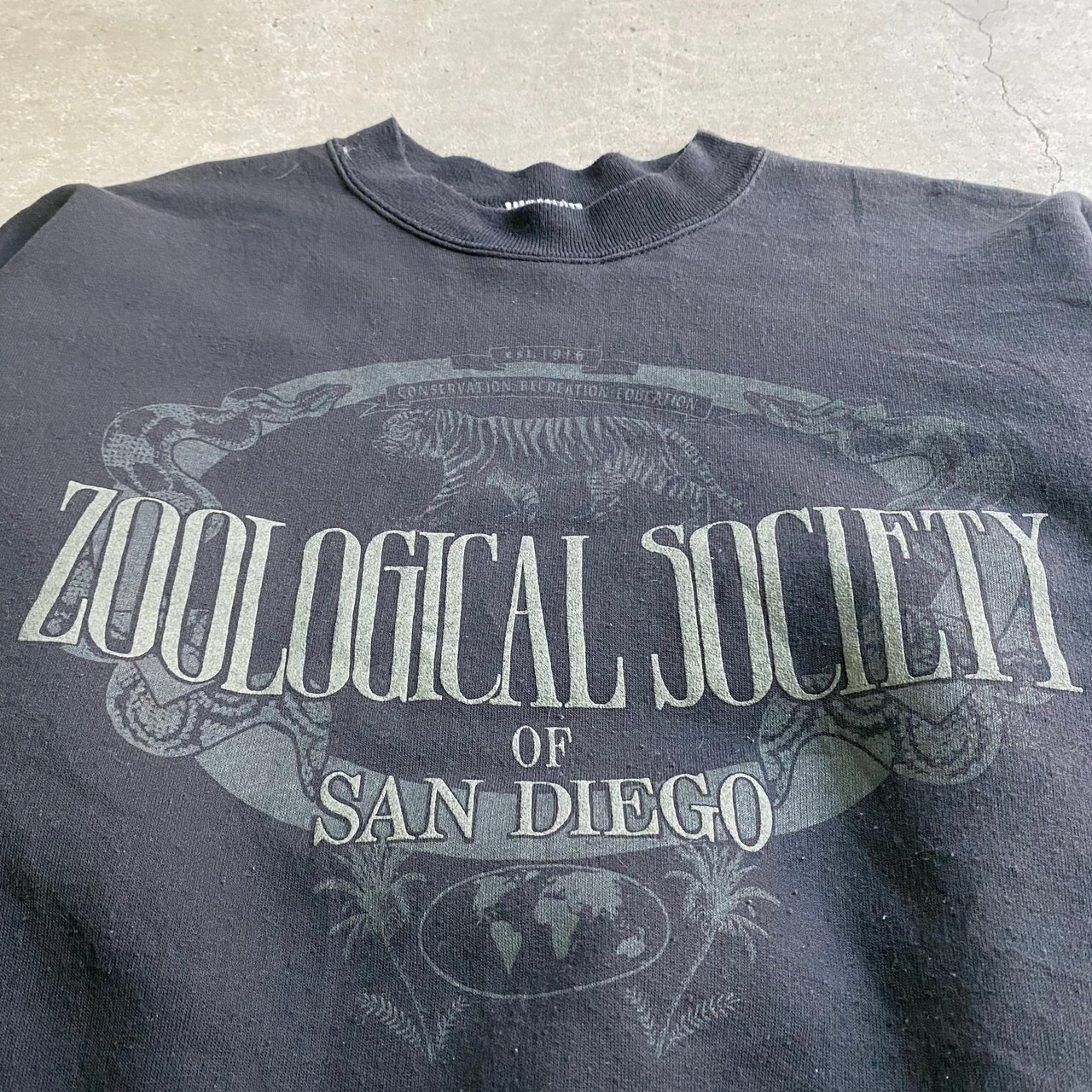 ■ 90年代 USA製 Hanes ZOOLOGICAL SOCIETY アニマル プリント スウェットシャツ メンズXL相当 古着 トレーナー 90s ヴィンテージ ビンテージ ブラック 黒 【スウェット】