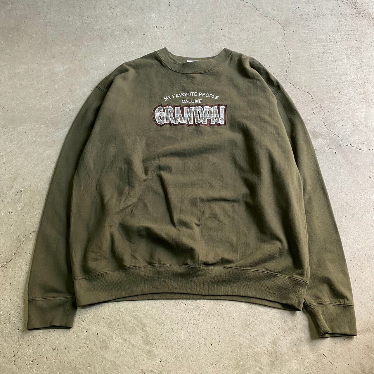 ビッグサイズ GRANDPA ワッペン 刺繍 ロゴ スウェットシャツ メンズ2XL相当 レディース 古着 トレーナー カーキ オリーブグリーン 緑色【スウェット】【P2000】【CS2312-AL1】