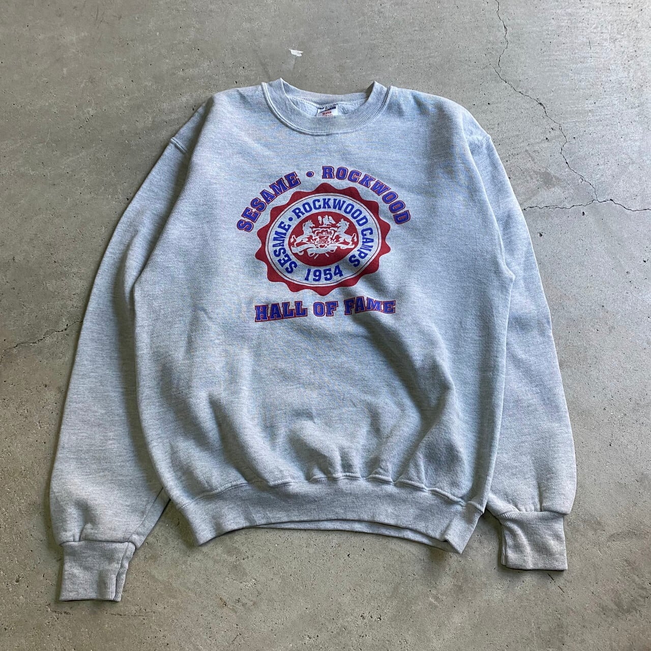 ■90年代 JERZEES ジャージーズ sesame rockwood キャンプ プリント スウェットシャツ トレーナー メンズM相当 レディースL相当 古着 90S ビンテージ ヴィンテージ グレー【スウェット】