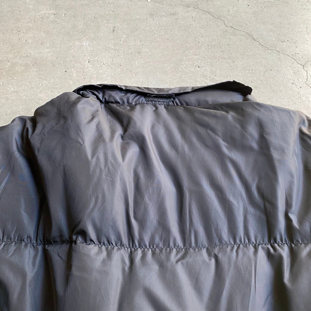 ビッグサイズ Champion チャンピオン ワンポイントロゴ 刺繍 ダウンジャケット フード収納型 メンズ2XL相当 古着 ブラック 黒【ブルゾン・ジャケット】