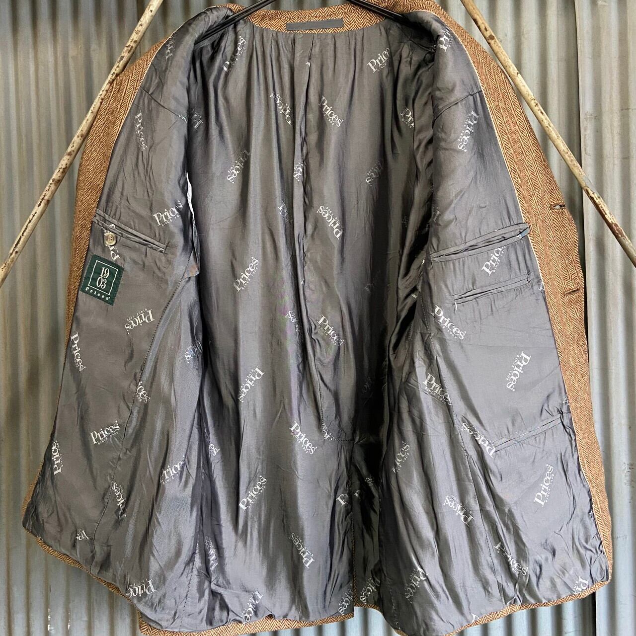 ■Prices' ウール ヘリンボーンツイル テーラードジャケット 42 LONG メンズL相当 古着 3B 3ボタン ブラウン 茶色 【ブルゾン・ジャケット】