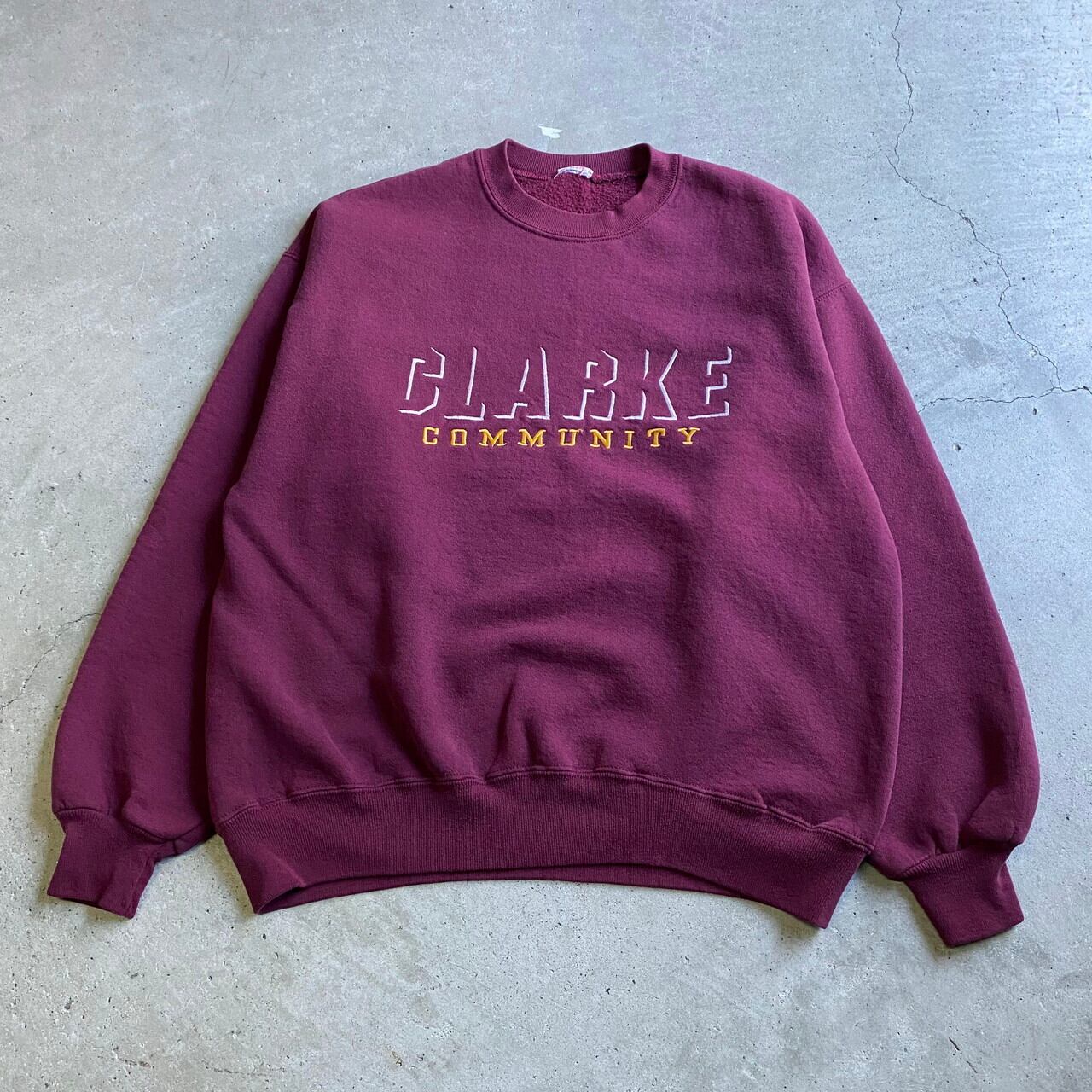 ■CLARKE COMMUNITY カレッジロゴ 刺繍 スウェットシャツ メンズL相当 古着 トレーナー ワインレッド【スウェット】
