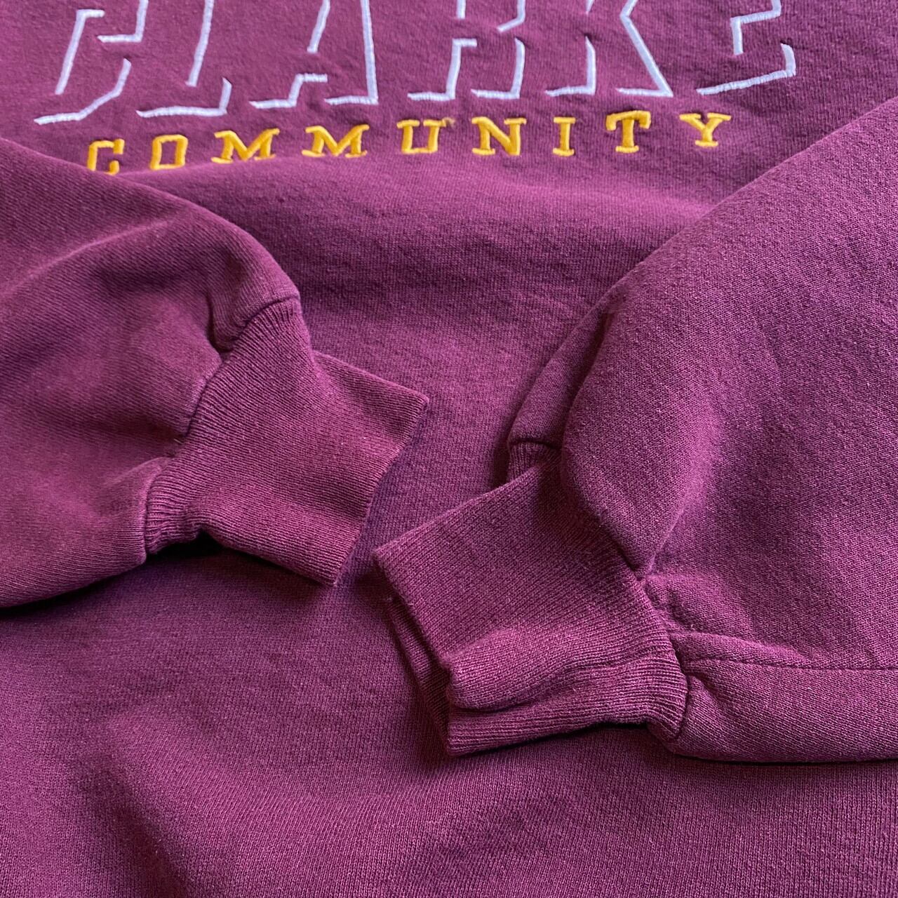 CLARKE COMMUNITY カレッジロゴ 刺繍 スウェットシャツ メンズL相当 古着 トレーナー ワインレッドスウェット】【CS2211-50】