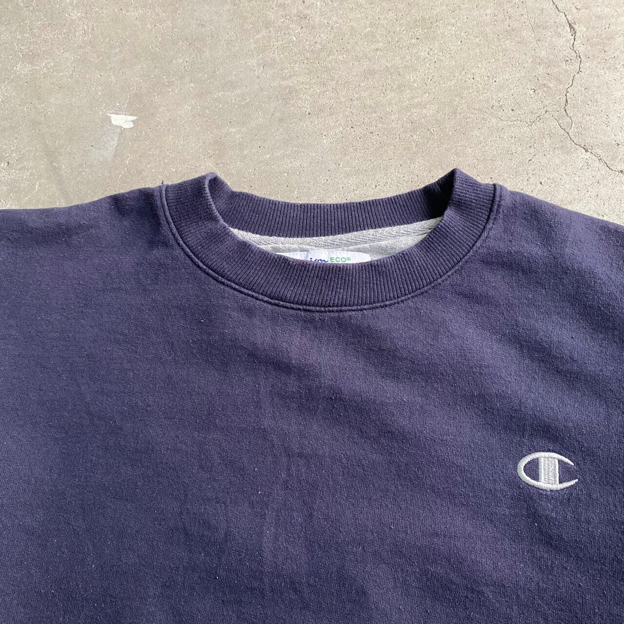 ■ビッグサイズ Champion チャンピオン ワンポイントロゴ刺繡 スウェットシャツ メンズ3XL相当 古着 トレーナー ネイビー 紺 大きいサイズ【スウェット】