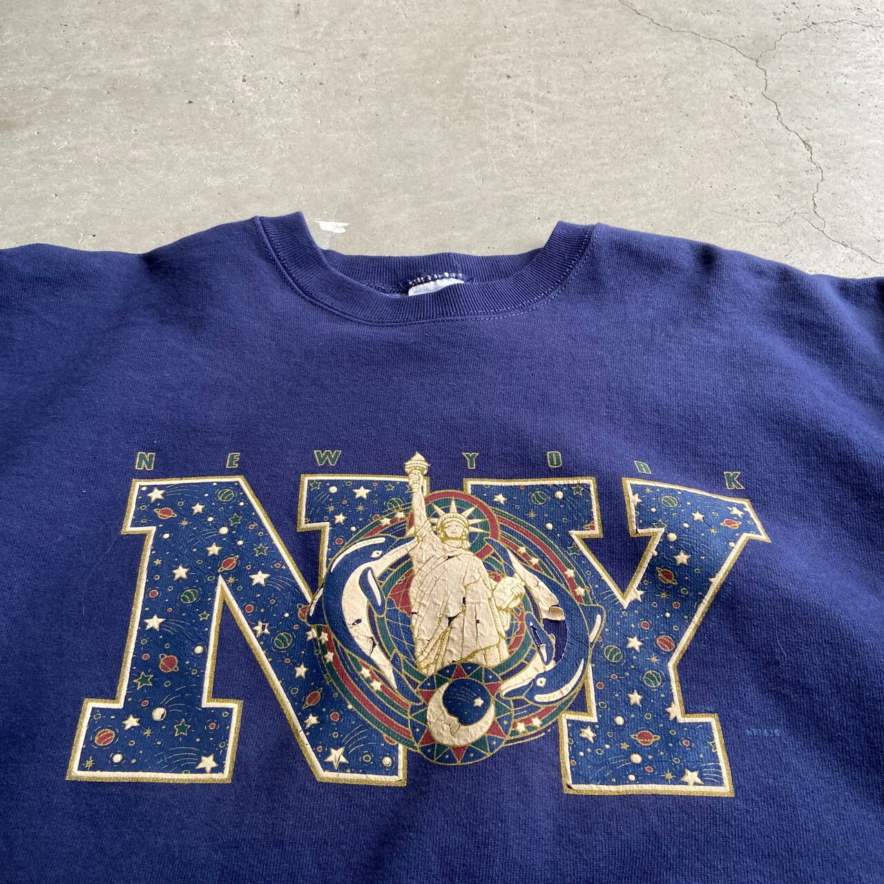 ■ビッグサイズ 90年代 ヴィンテージ NEW YORK ニューヨーク プリント スウェット メンズXL 古着 ビンテージ 90s スーベニア ネイビー 紺 裏起毛【スウェット】