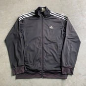 adidas アディダス ワンポイントロゴ プリント サイドライン トラックジャケット ジャージ メンズM相当 古着 ブラック ライトグレー 黒 灰色【ジャージ・トラックジャケット】【CS2301-50】