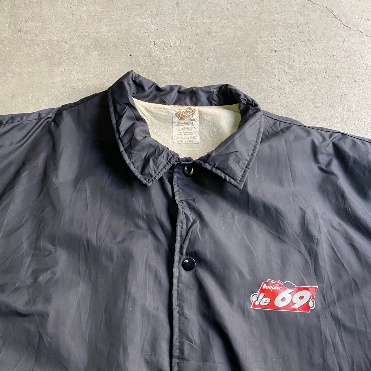 Bonjour le 69 ロゴプリント コーチジャケット ナイロンジャケット メンズXL相当 相当 古着 ブラック 黒【ナイロンジャケット】【SA2204】