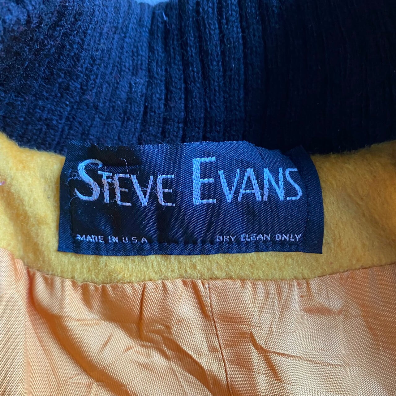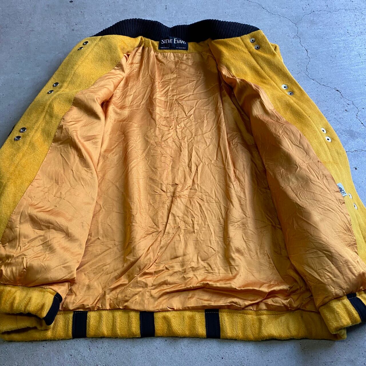 ■80年代 USA製 STEVE EVANS 幾何学柄 パッチワークデザイン ドルマンスリーブ ウールジャケット ブルゾン レディースL-XL相当 メンズM-L相当 古着 ヴィンテージ ビンテージ 肩パッド入り 80s イエロー 黄色【ブルゾン・ジャケット】