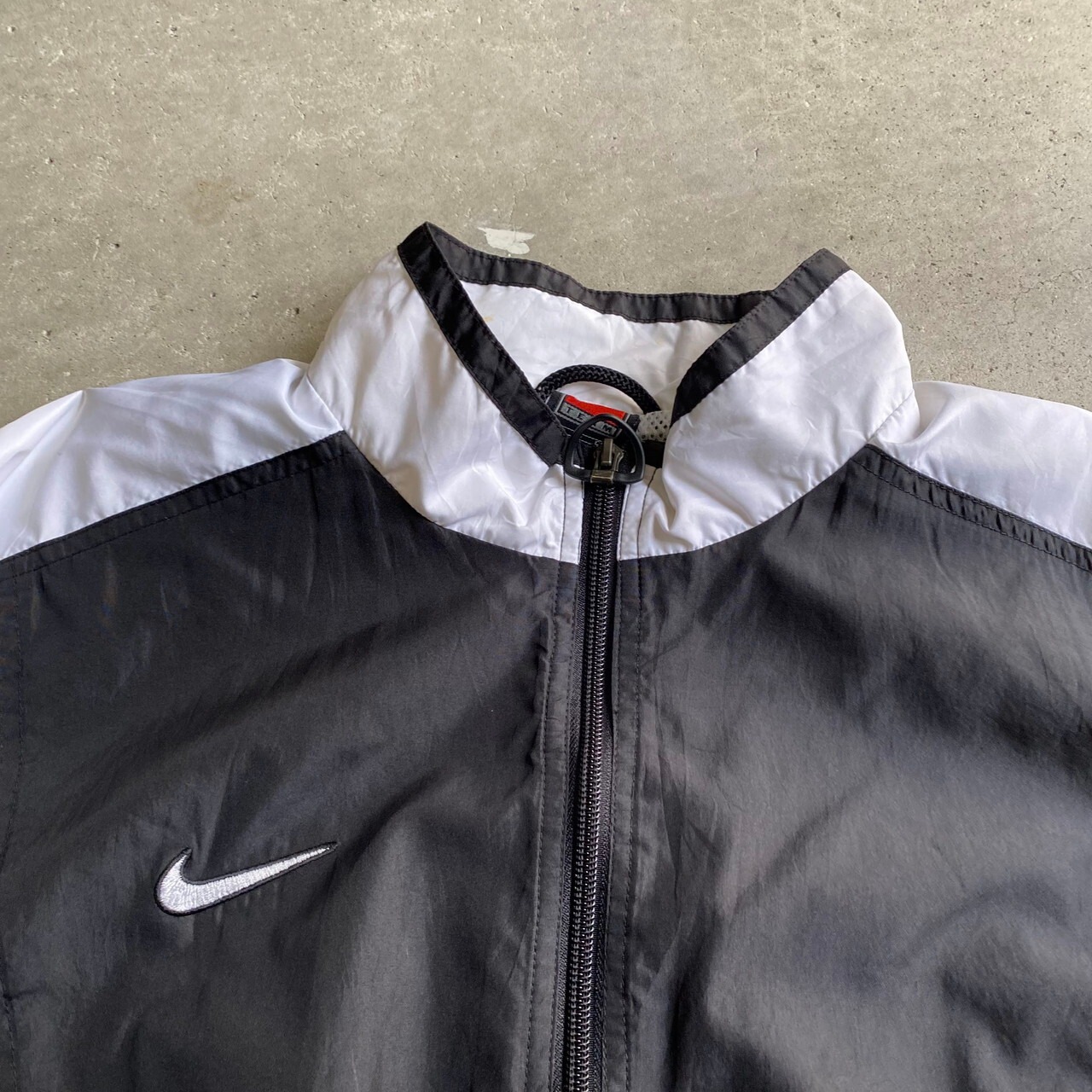 00年代 NIKE TEAM ナイキ スウォッシュロゴ刺繍 切り替え ナイロンジャケット メンズM相当 古着 00s ビンテージ ヴィンテージ ブラック ホワイト 黒 白【ナイロンジャケット】