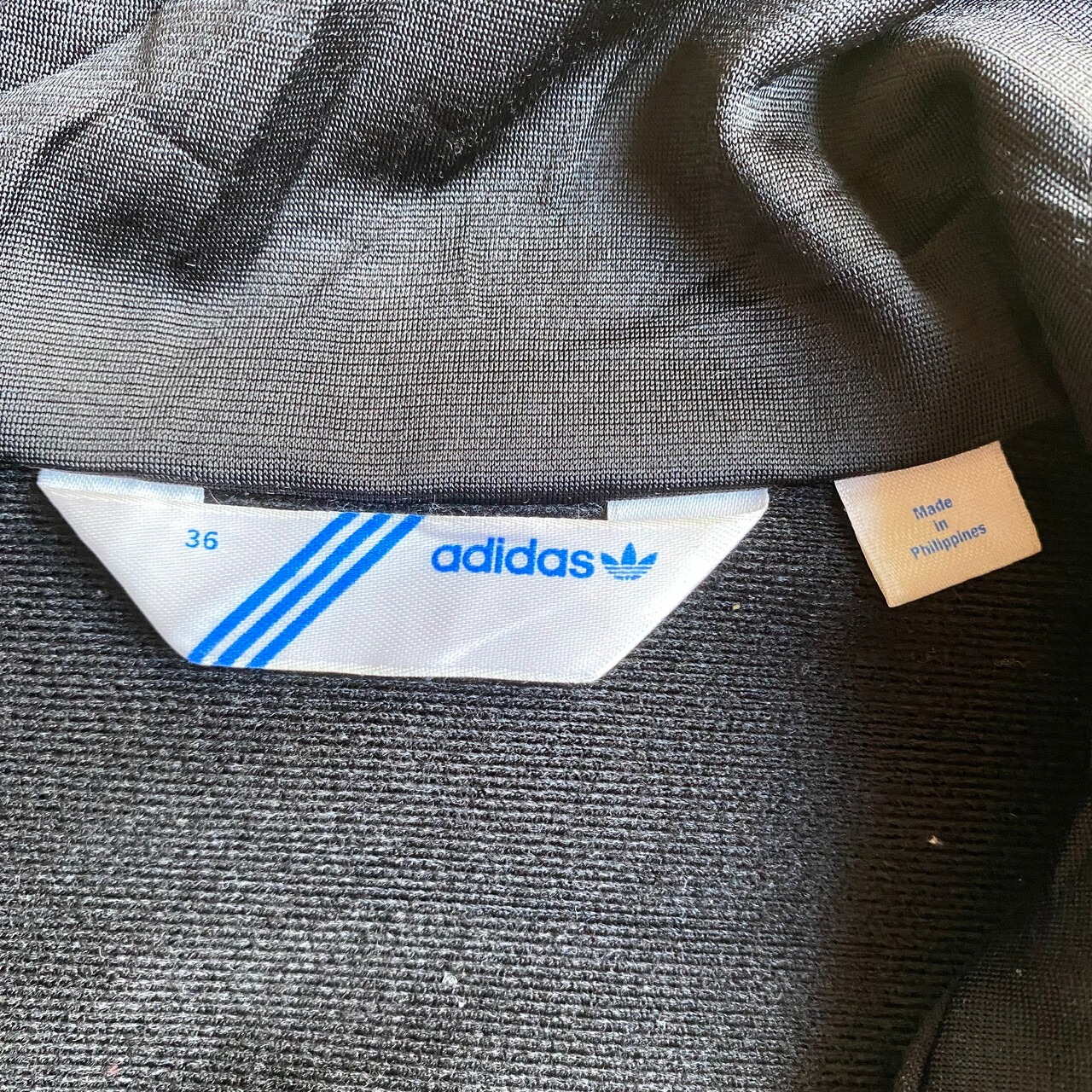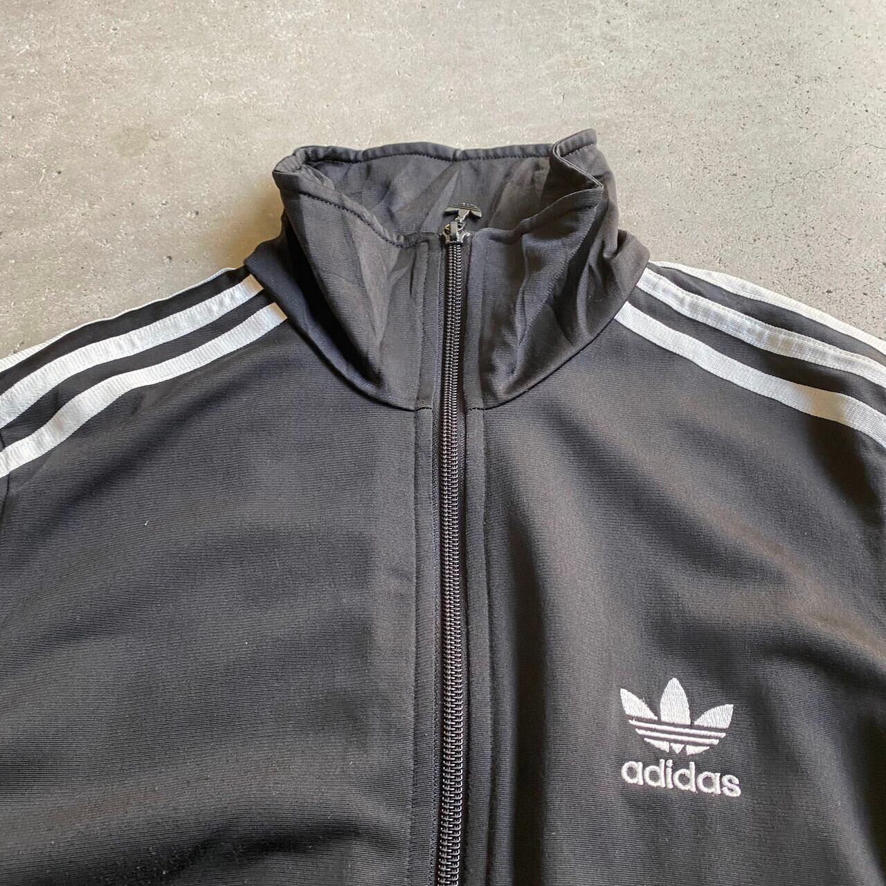 ■00年代 adidas アディダス ジャージ トレフォイル ロゴ刺繍 バックプリントトラック ジャージ ジャケット レディースS相当 古着 ブラック 黒 00s ヴィンテージ ビンテージ【ジャージ・トラックジャケット】