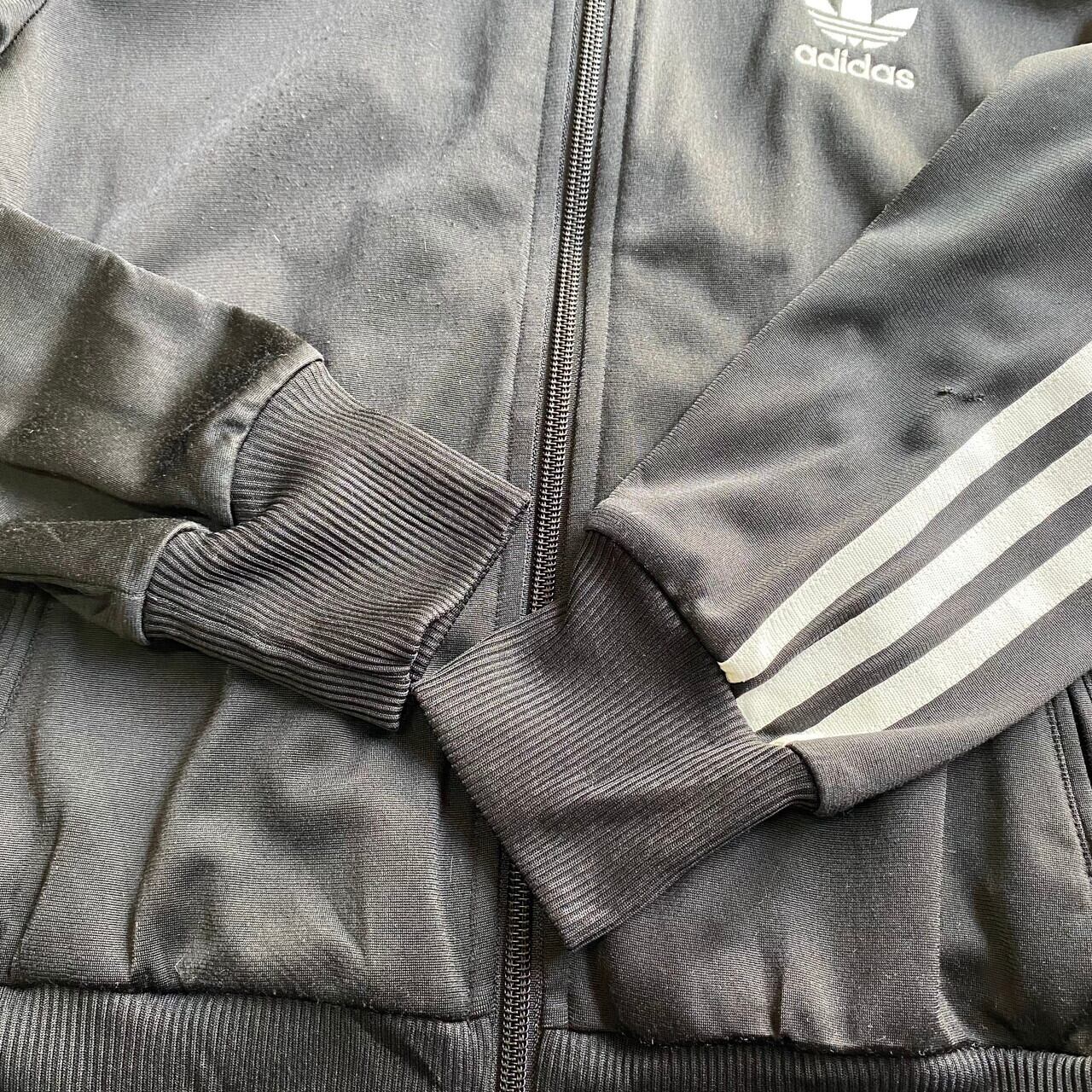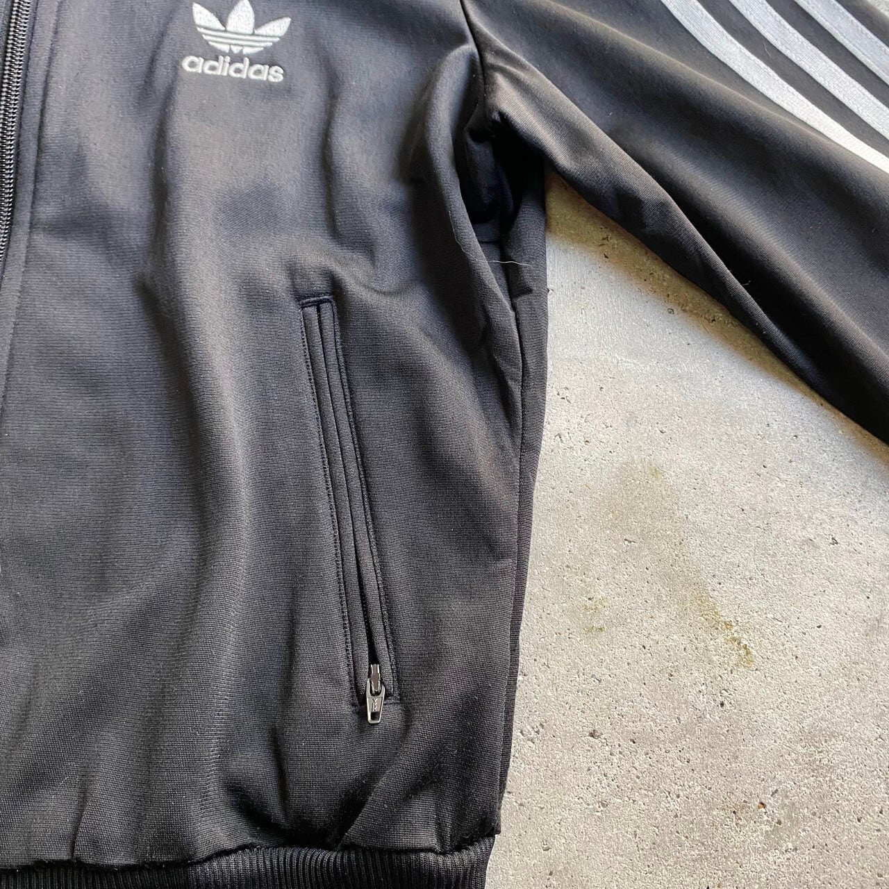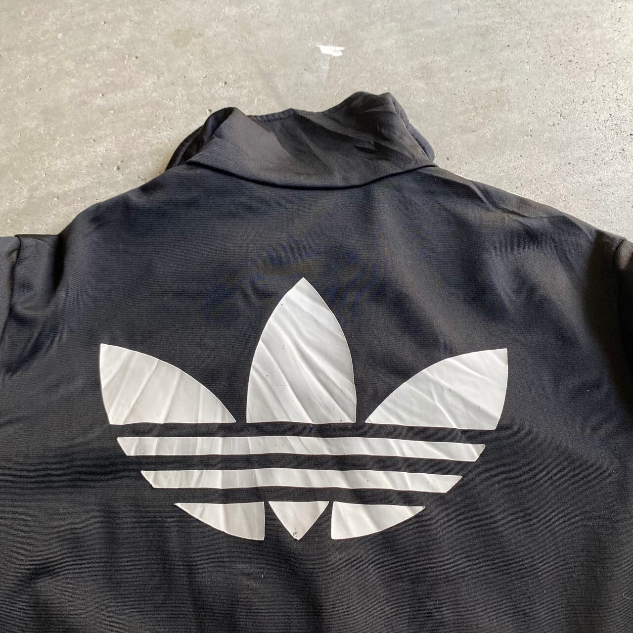 00年代 adidas アディダス ジャージ トレフォイル ロゴ刺繍 バックプリントトラック ジャージ ジャケット レディースS相当 古着 ブラック 黒 00s ヴィンテージ ビンテージ【ジャージ・トラックジャケット】【CS2211-50】