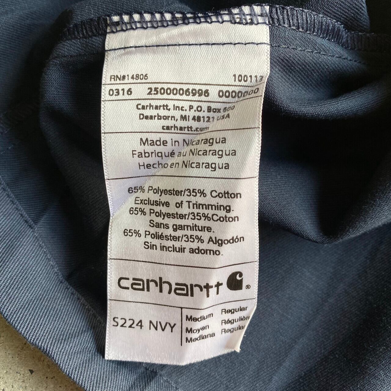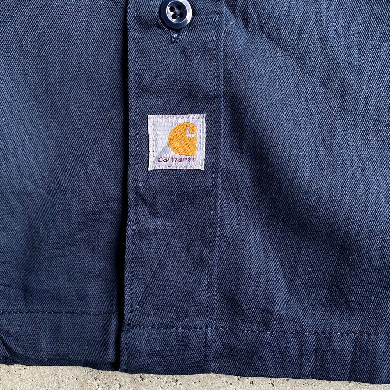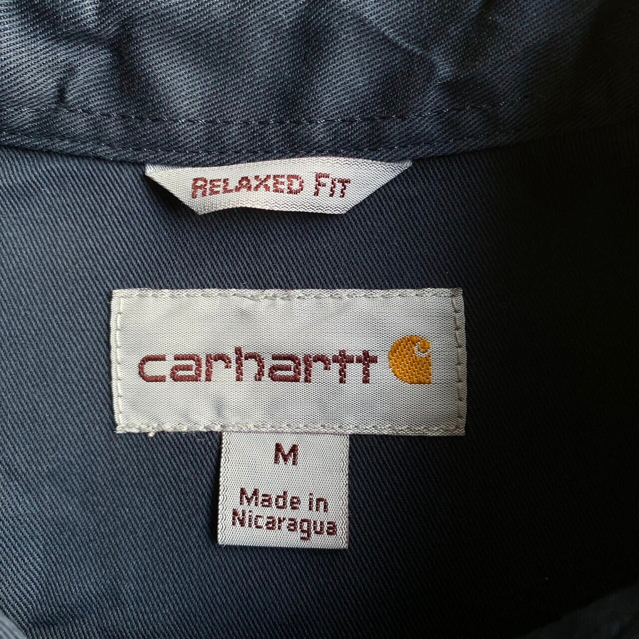 Carhartt カーハート 企業ロゴ刺? 長袖 ワークシャツ RELAXED FIT メンズL相当 古着 ネイビー 紺【長袖シャツ】【CS2211-50】