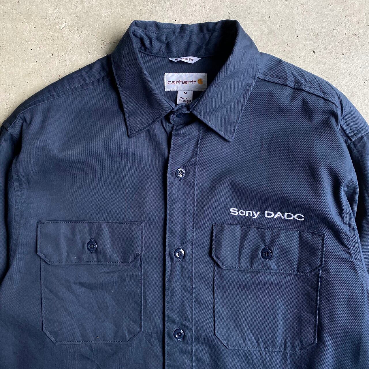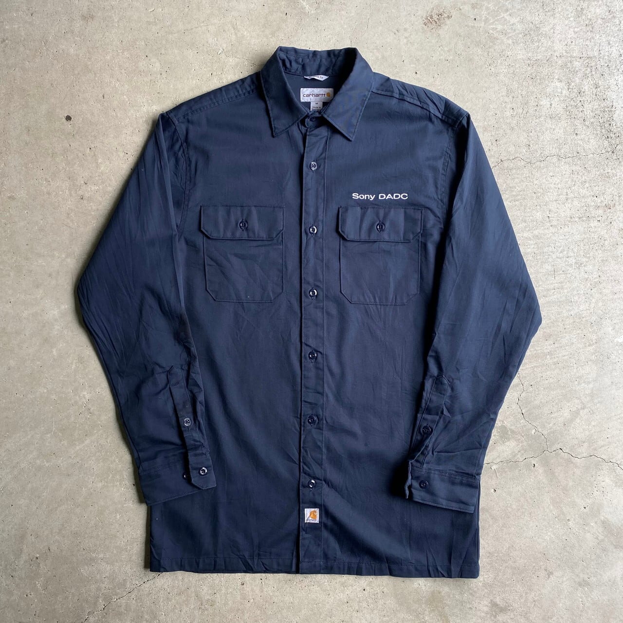 ■Carhartt カーハート 企業ロゴ刺繡 長袖 ワークシャツ RELAXED FIT メンズL相当 古着 ネイビー 紺【長袖シャツ】