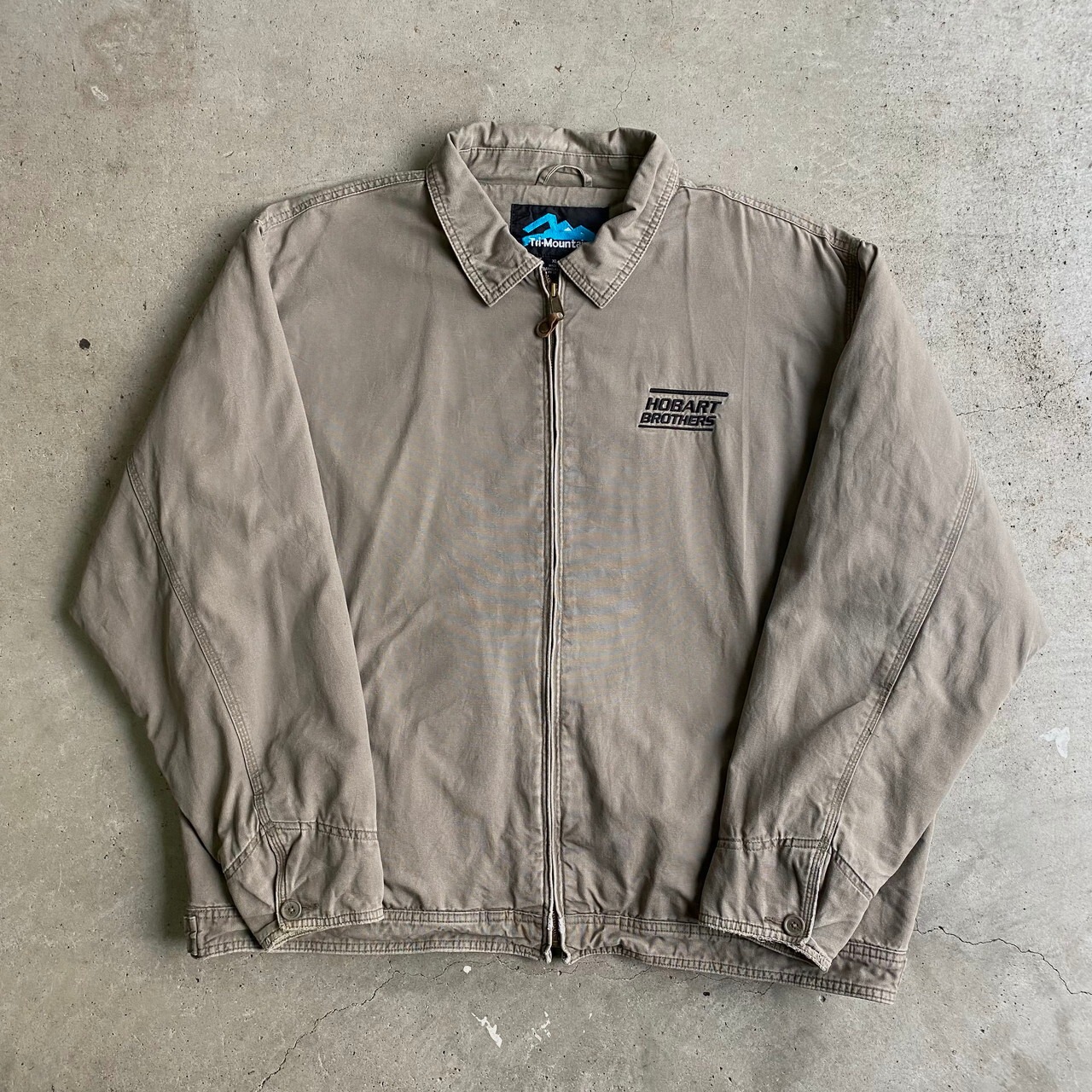 ■ビッグサイズ Tri Mountain 企業ロゴ刺繍 フリースライナー ワークジャケット メンズXL 古着 ブラウン 茶色 大きいサイズ【ワークジャケット】