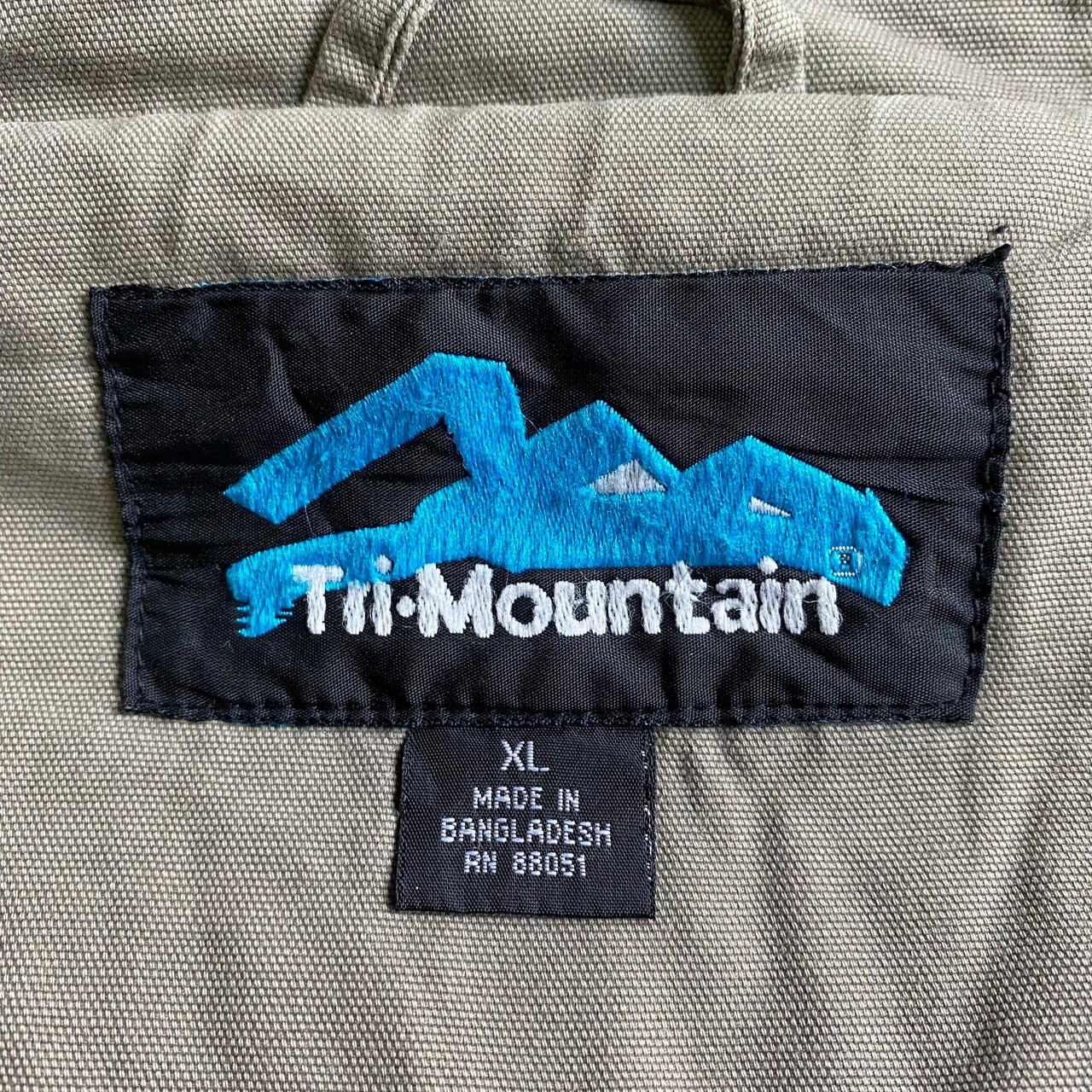 ビッグサイズ Tri Mountain 企業ロゴ刺繍 フリースライナー ワークジャケット メンズXL 古着 ブラウン 茶色 大きいサイズ【ワークジャケット】【CS2211-40】【CS2301-40】