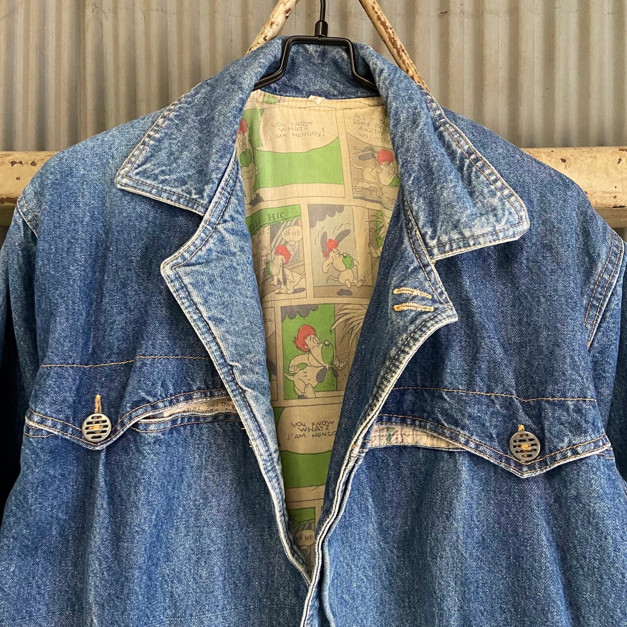 90s ヴィンテージ LENNON’S コミック ユーロ テーラードカラー デニムジャケット メンズL相当 古着 アメコミ 90s ビンテージ【デニムジャケット】