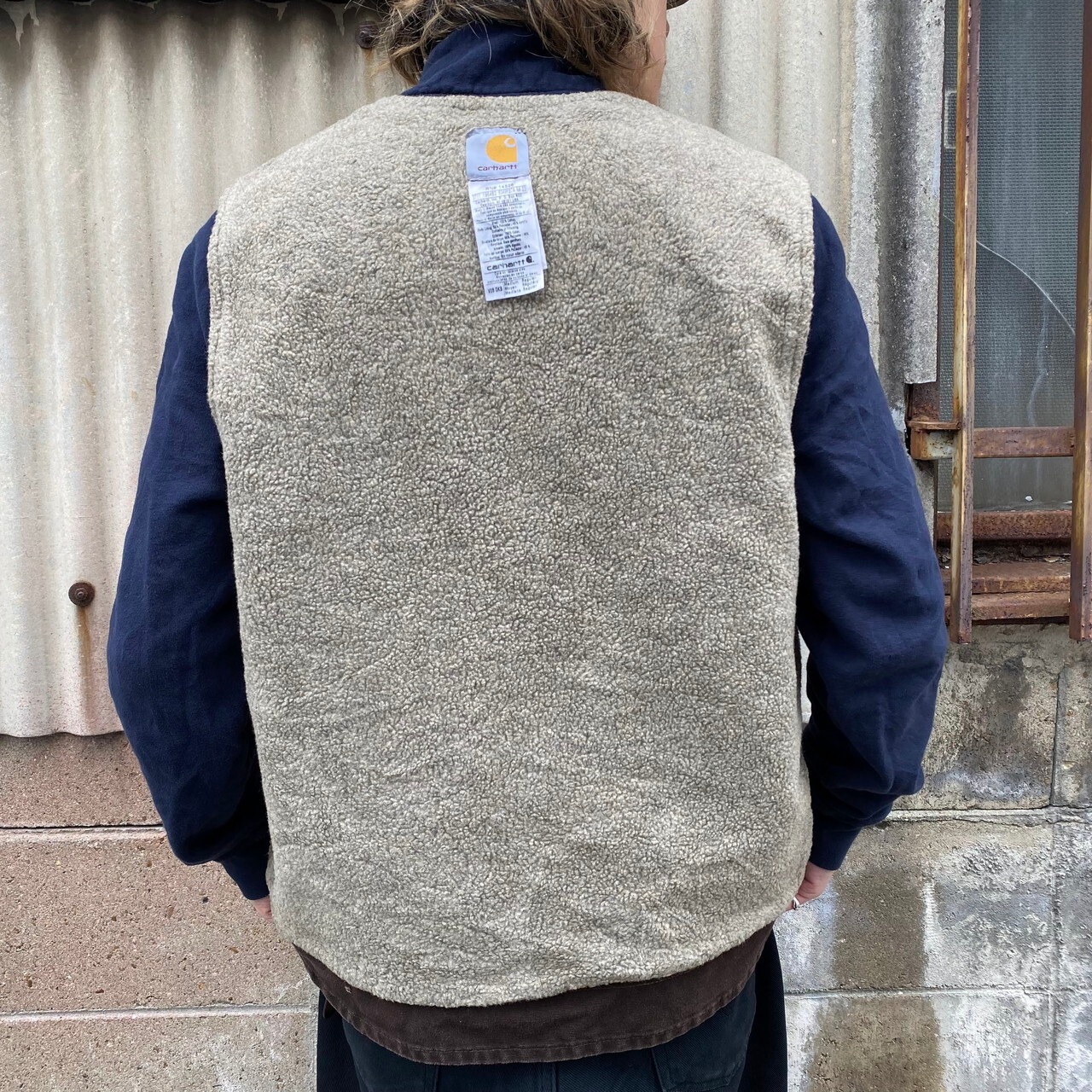 Carhartt カーハート ダック地 ノーカラー ワークベスト ボアライナー メンズM 古着 ブラウン 茶色 【ワークジャケット】